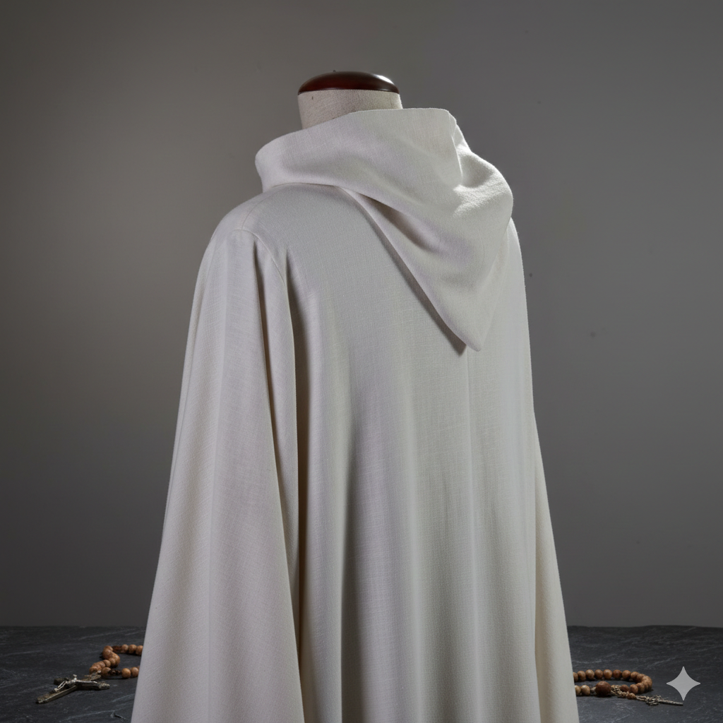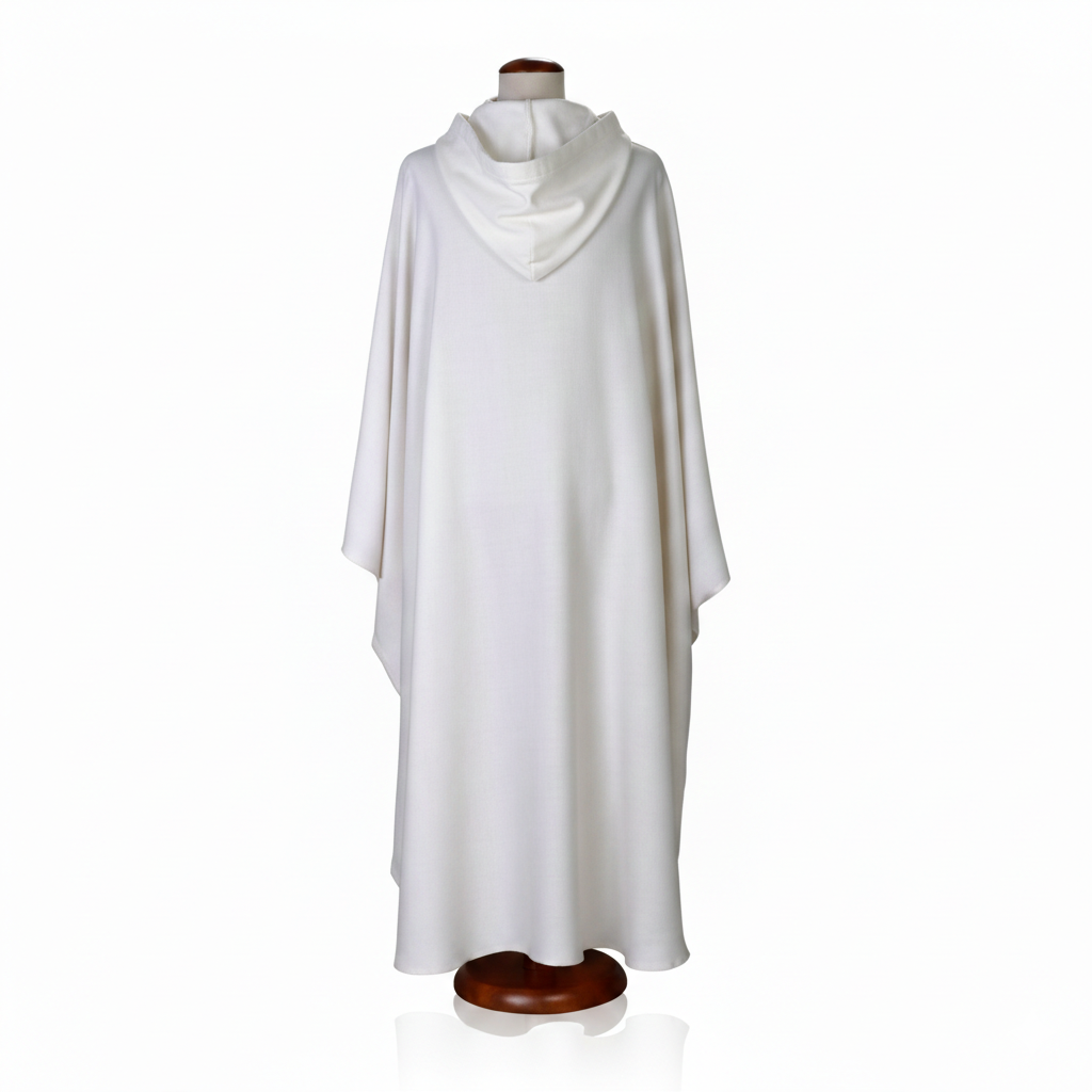 Alba zakonna z kapturem to szata liturgiczna o prostym, tradycyjnym charakterze, nawiązująca do duchowości zakonnej. Kaptur nadaje jej wyraźnie odmienny styl od klasycznych alb kapłańskich.