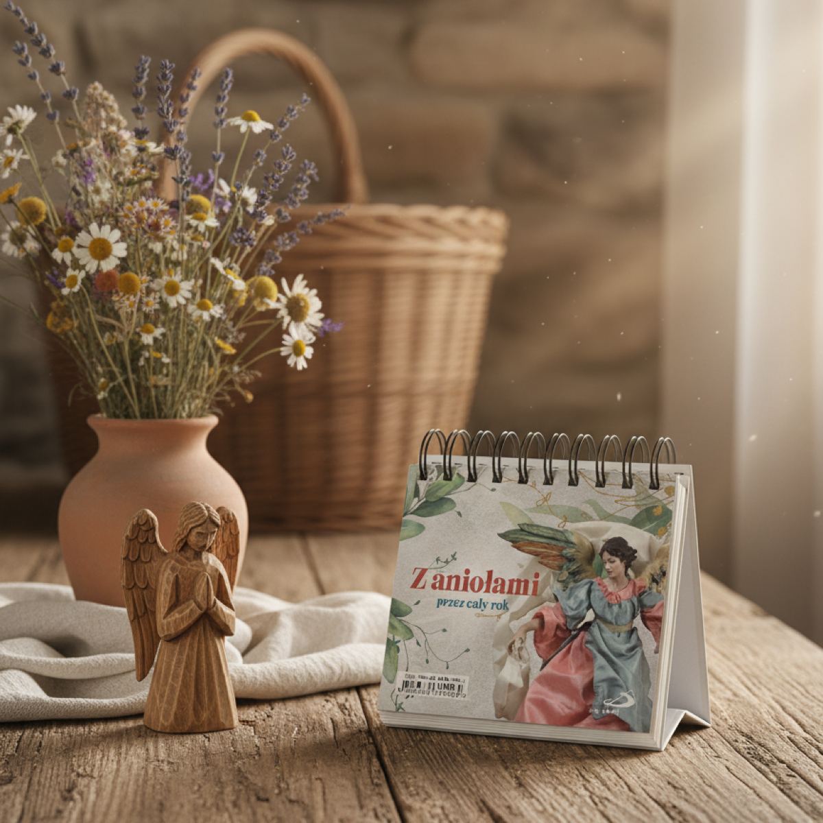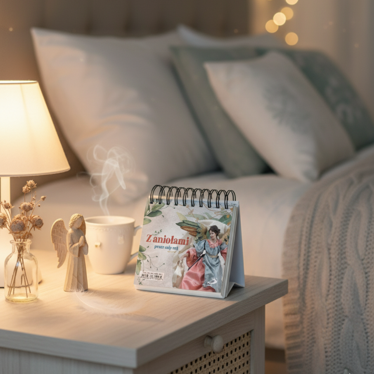 Każda strona niesie krótkie przesłanie, które pomaga dobrze rozpocząć dzień — czy to jako słowo otuchy, zachęta do modlitwy, czy delikatne przypomnienie o Bożej obecności i opiece aniołów.