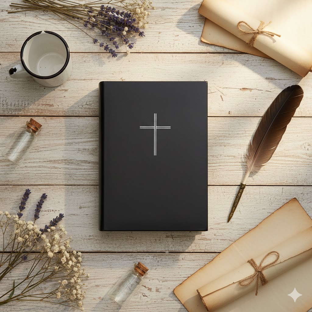 Minimalistyczne zdobienie w formie krzyża nawiązuje do obecności Chrystusa w codziennym życiu wierzącego. Prosty i elegancki design sprawia, że okładka doskonale komponuje się z charakterem modlitewnika oraz zachowuje jego religijną symbolikę.