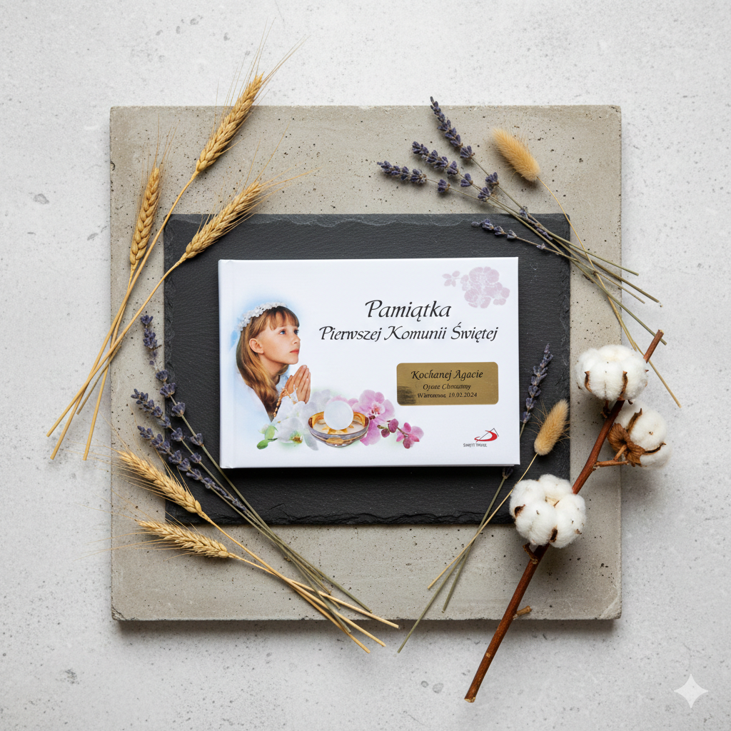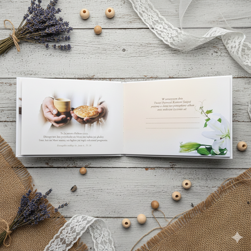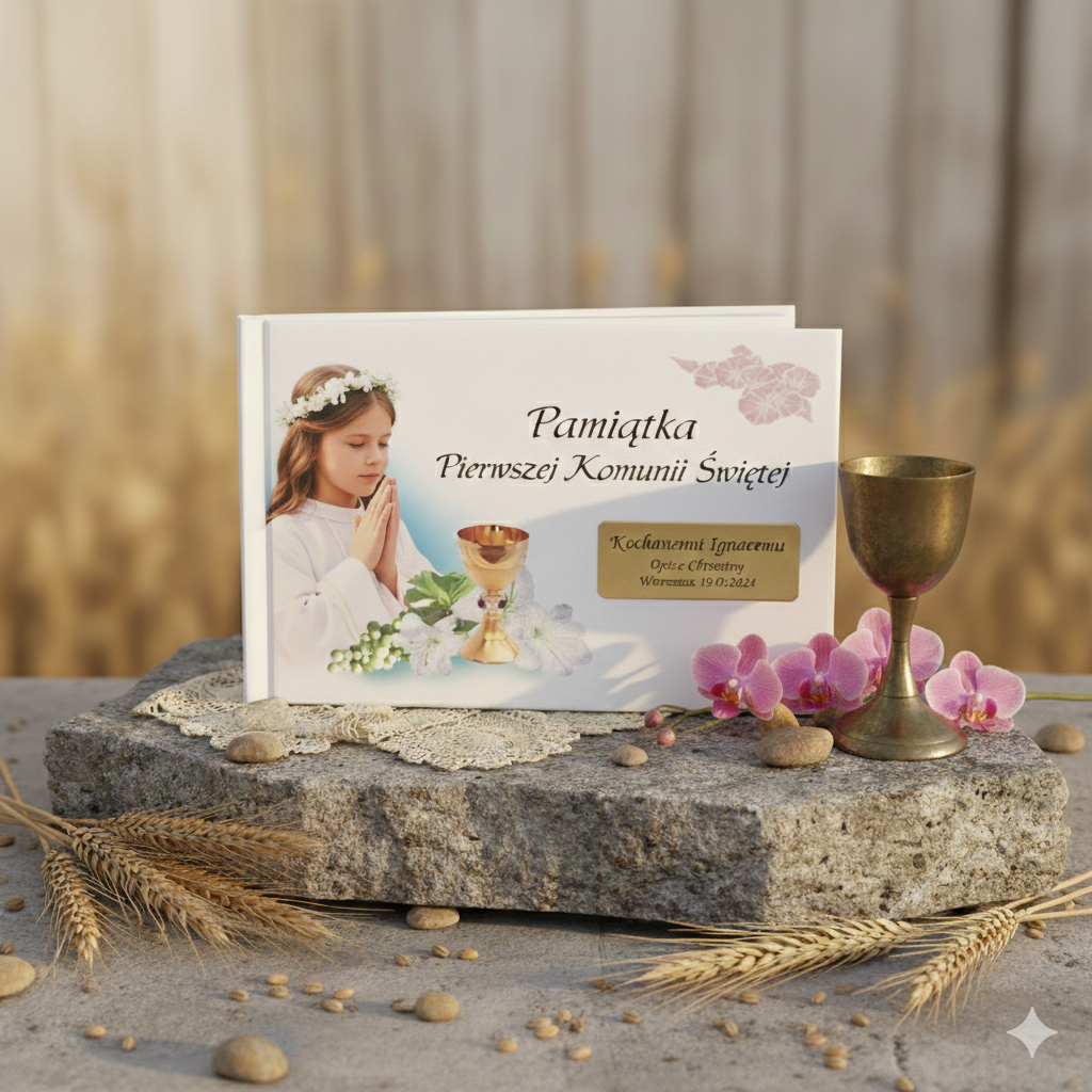 - Książeczki i albumy komunijne – pamiątki z życzeniami