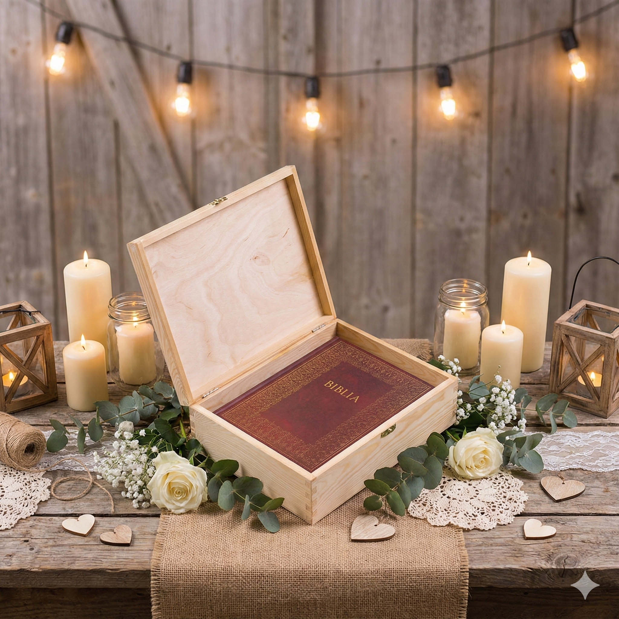 Zestaw Biblia Domowa Rodzinna w drewnianym pudełku to przemyślany, trwały i symboliczny prezent, który pozostaje w rodzinie na długie lata jako znak wiary, miłości i wspólnej drogi małżeńskiej.