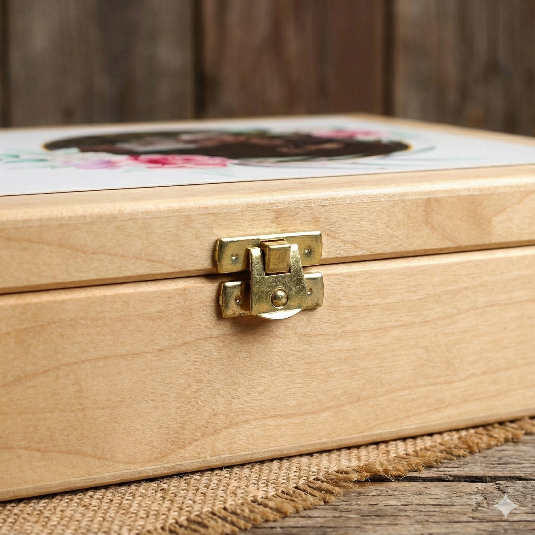 - Każde pudełko unikatowe – naturalna struktura drewna.