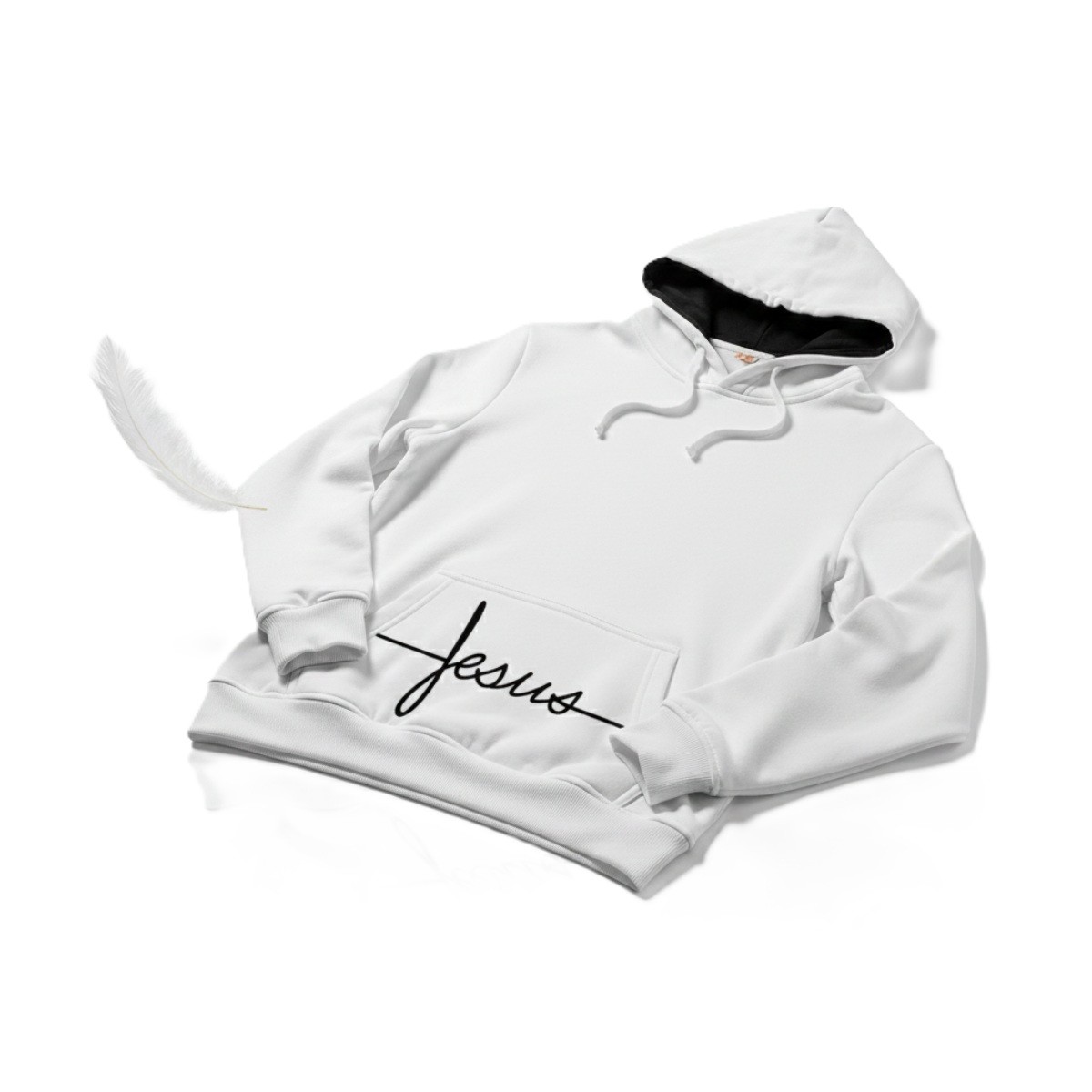 Bluza religijna „Jezus” to kwintesencja minimalizmu i duchowej elegancji. Głównym elementem projektu jest delikatny, typograficzny napis umieszczony na kieszeni kangurce, który w prosty, ale niezwykle wymowny sposób wyraża wiarę w Chrystusa.