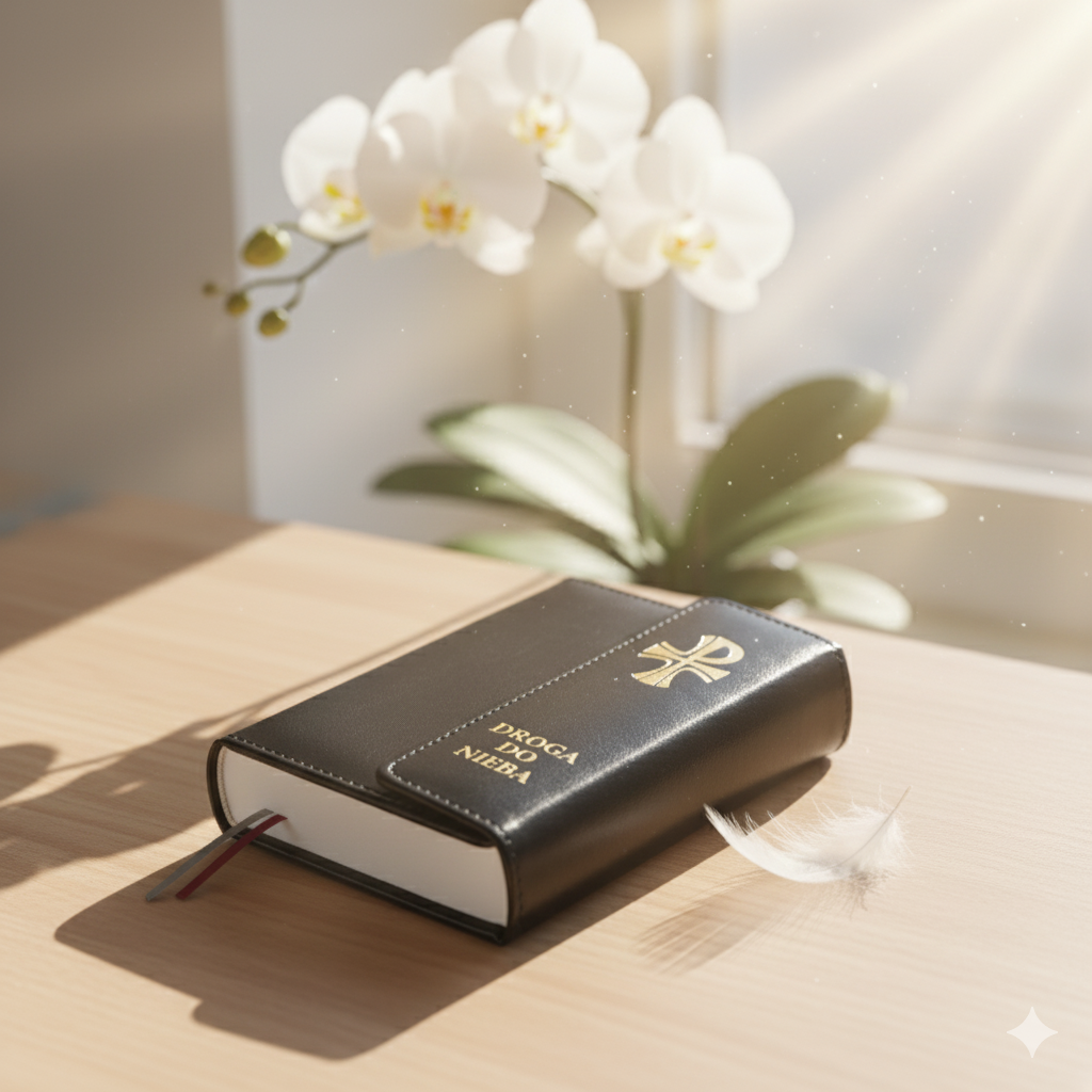 Wydanie „Drogi do Nieba” w czarnej ekoskórze z magnetycznym zapięciem to połączenie klasycznej formy z nowoczesnym wykończeniem. Trwała oprawa chroni modlitewnik przez lata, a ponadczasowa treść sprawia, że staje się on duchowym towarzyszem na każdym etapie życia.
