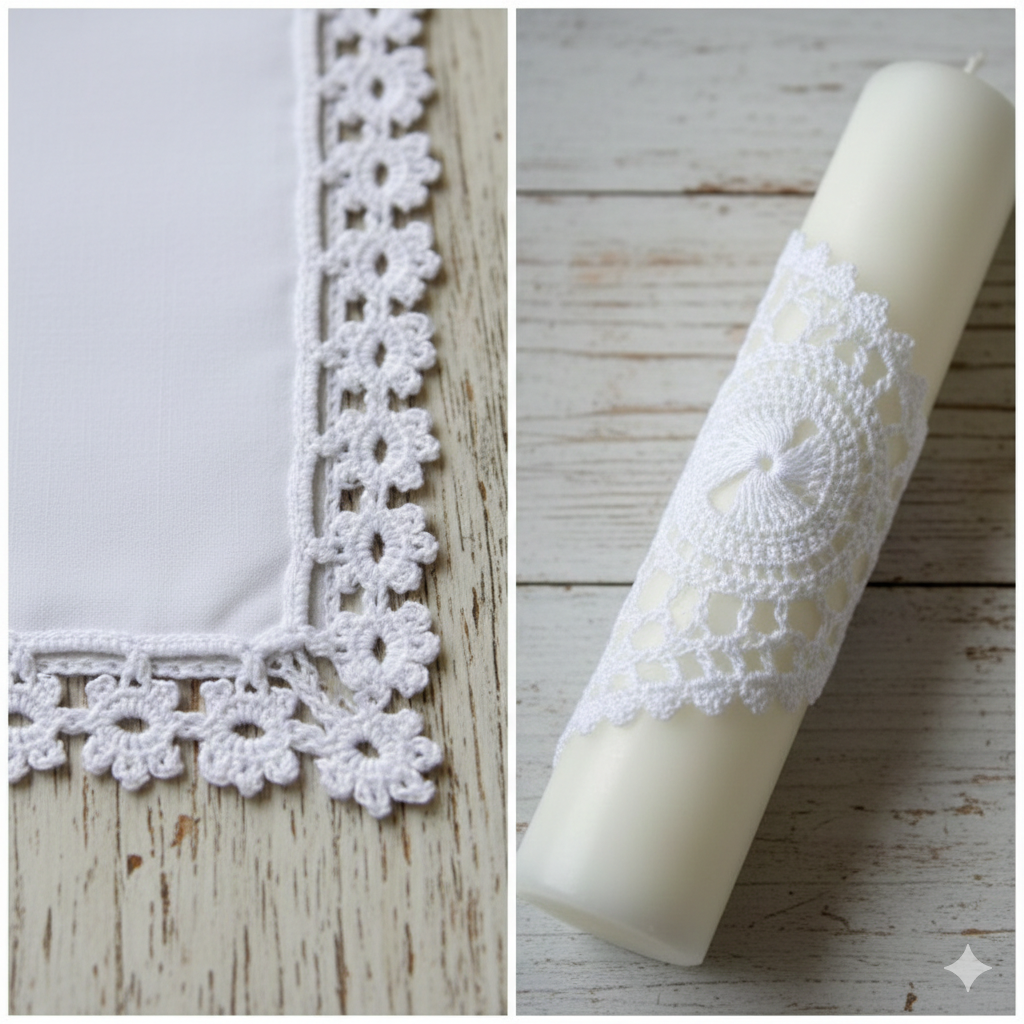 Każdy komplet z tej linii łączy duchowy wymiar sakramentu z żywym dziedzictwem polskiej kultury. Ręcznie heklowana koronka nie jest jedynie ozdobą – to znak ciągłości, modlitwy i przekazywanych wartości.