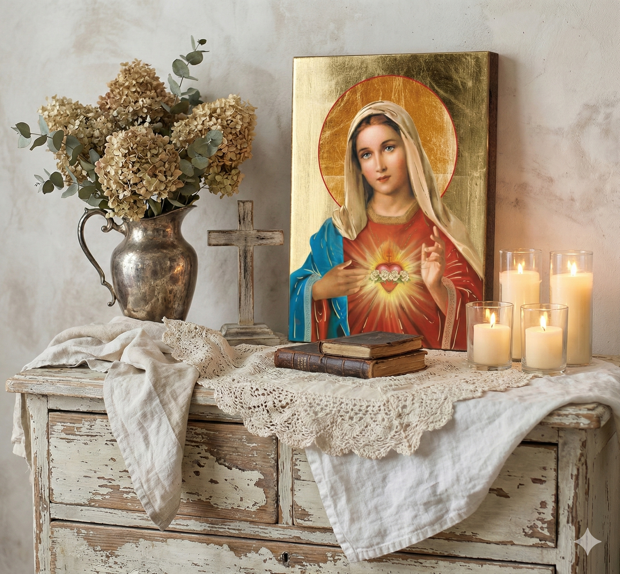 Ikonę się nie tylko ogląda – ikonę się czyta. Każdy gest, kolor i symbol mają swoje znaczenie, tworząc spójną duchową opowieść. Wizerunek Niepokalanego Serca Maryi prowadzi ku refleksji nad miłością, czystością i oddaniem Bogu.