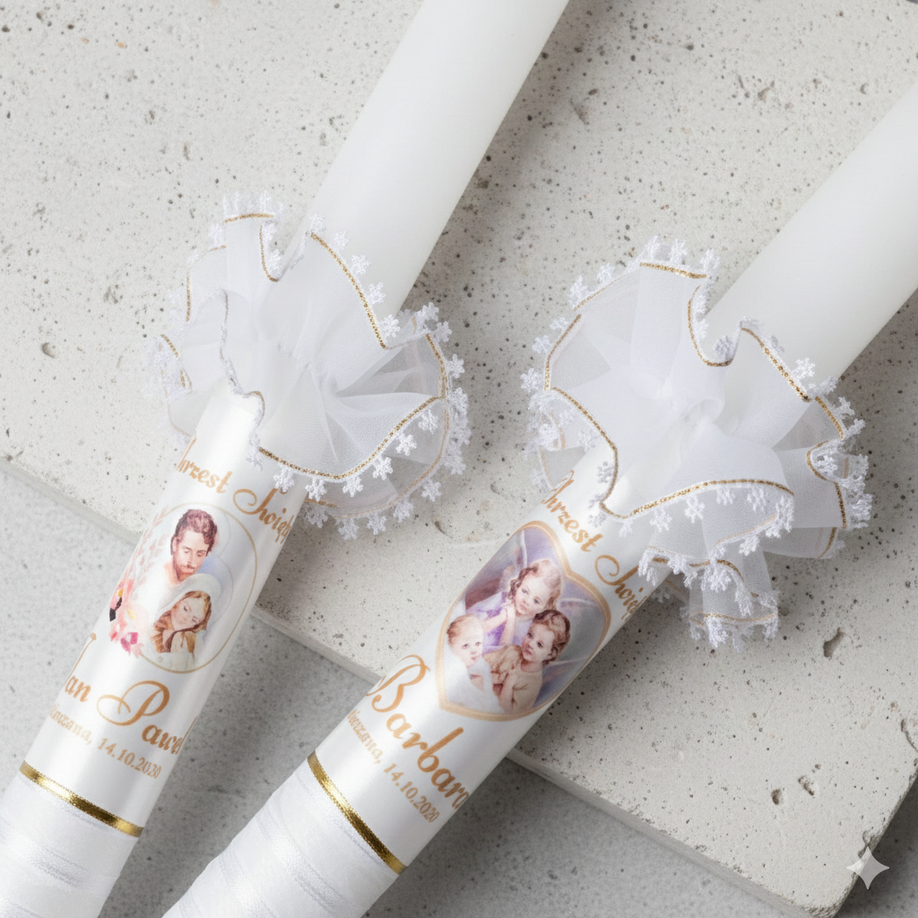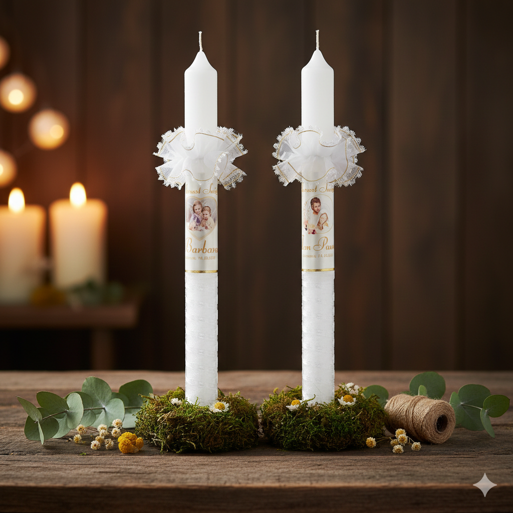 Poznaj kolekcję personalizowanych świec na Chrzest i Komunię Świętą.