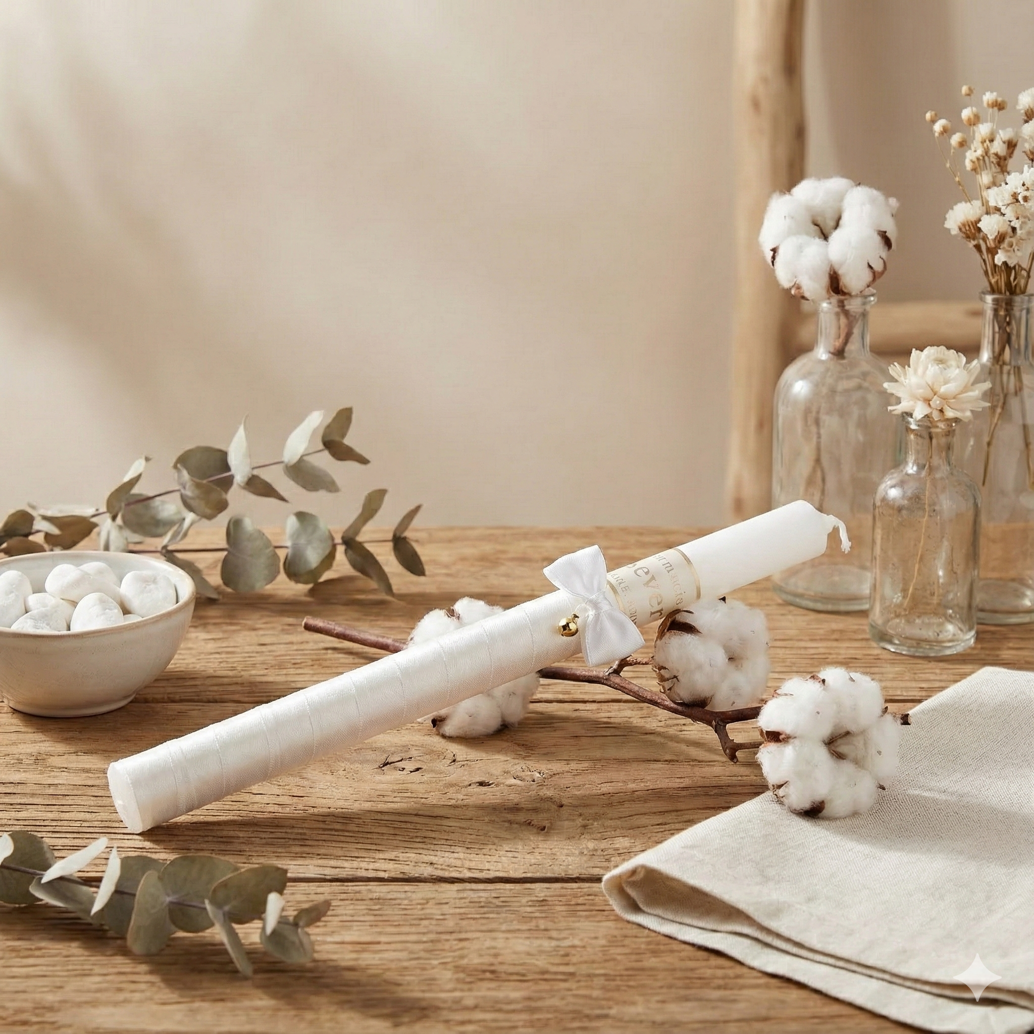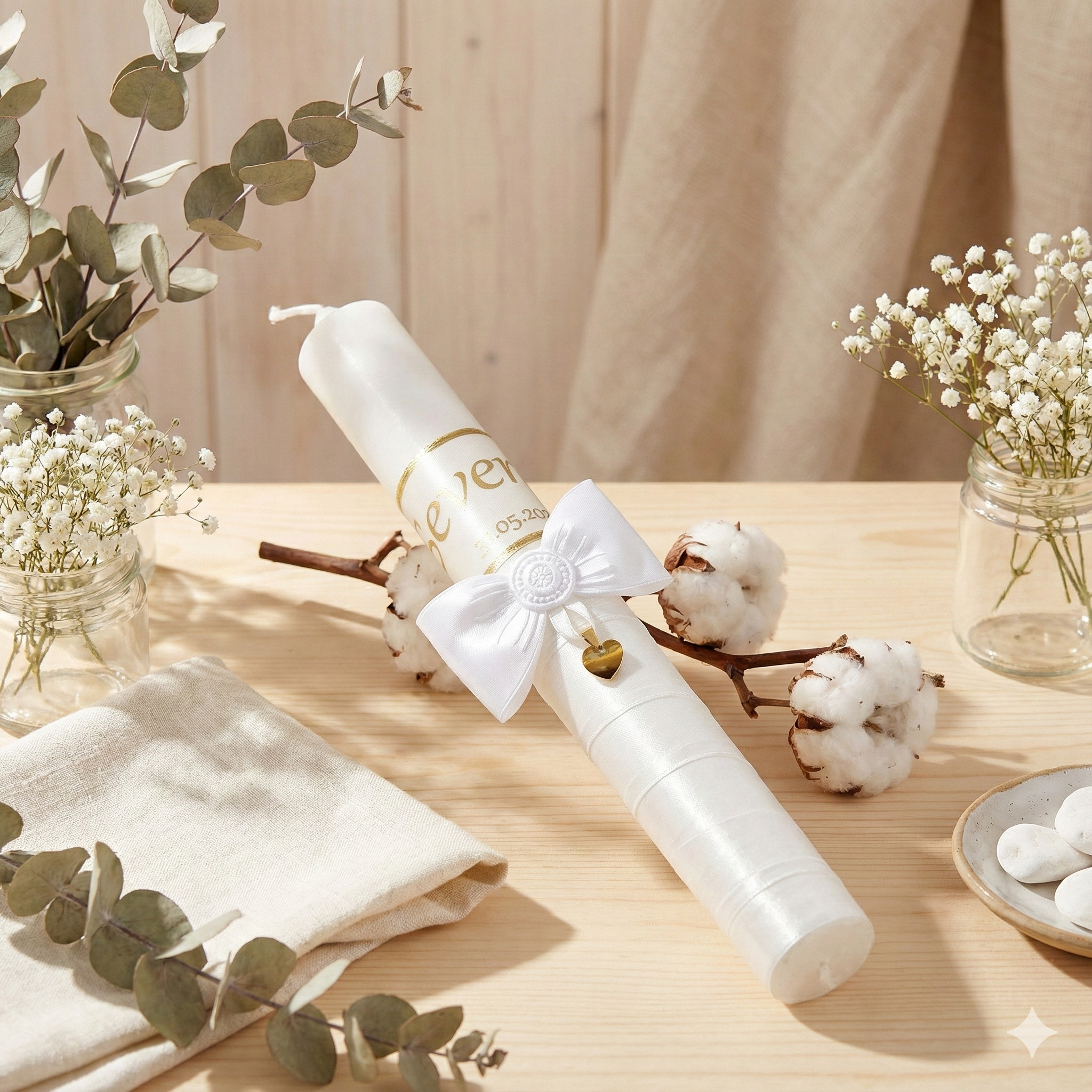Każda świeca jest personalizowana imieniem dziecka i datą uroczystości, co czyni ją niepowtarzalnym znakiem błogosławieństwa i duchowej obecności. Delikatny, a zarazem wyrazisty charakter sprawia, że świeca doskonale wpisuje się w sakramentalny wymiar uroczystości.
