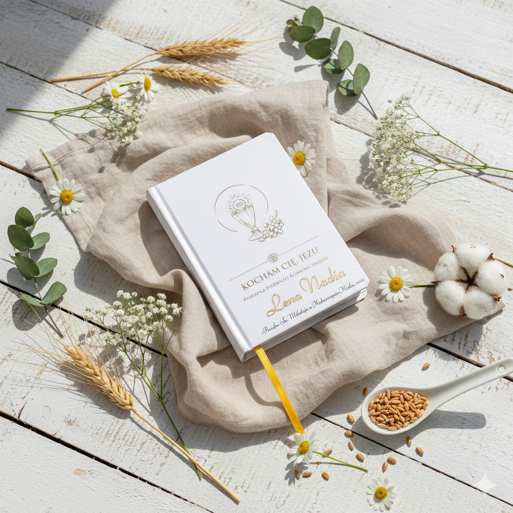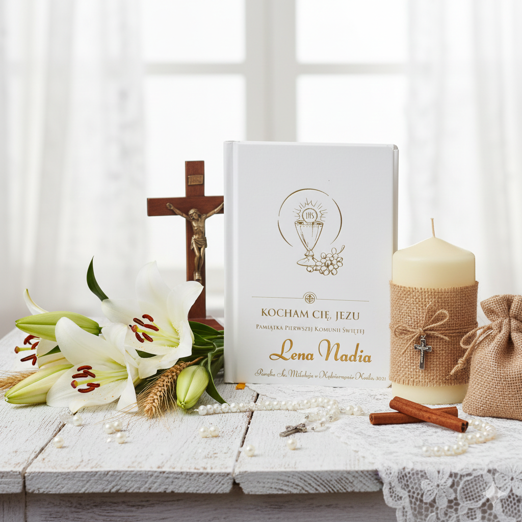 - Książeczki i albumy komunijne – pamiątki z życzeniami