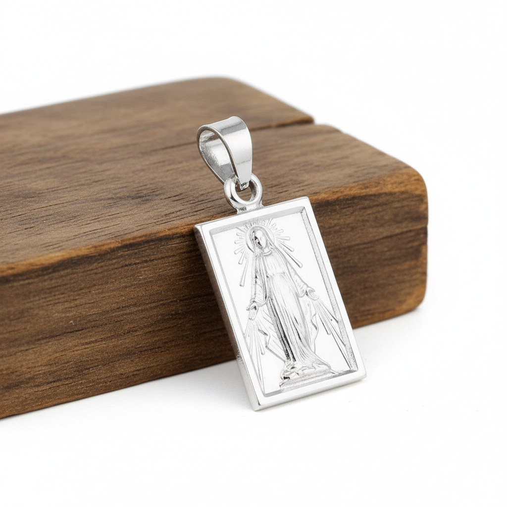 Srebrny Cudowny Medalik Matki Bożej Niepokalanej, próba 925. Symbol wiary, łaski i nieustannej opieki Maryi. Noszony z ufnością przynosi pokój, nadzieję i duchowe wsparcie na każdy dzień.