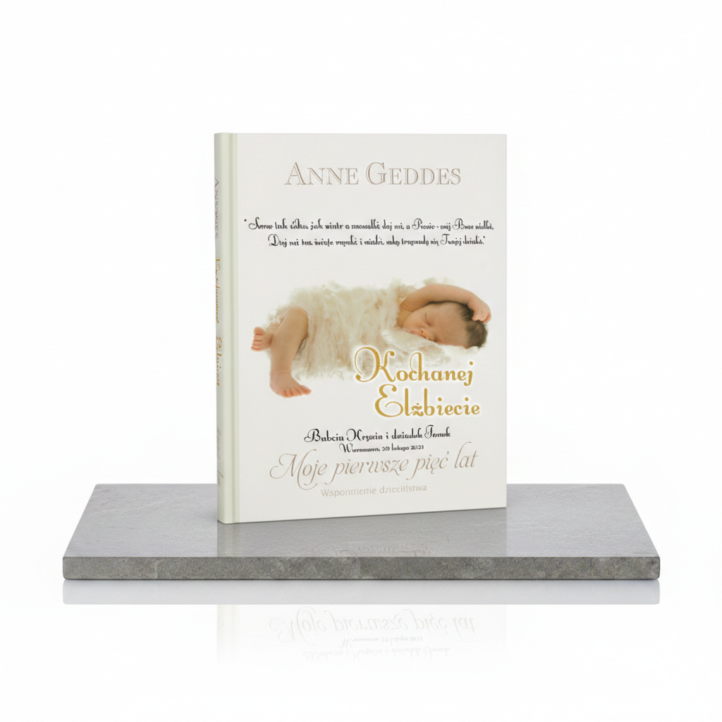 Elegancki album „Moje Pierwsze 5 Lat” z fotografiami Anne Geddes, personalizowany dedykacją w technologii druku cyfrowego Ink-Jet. Wyjątkowa pamiątka pierwszych lat życia dziecka.