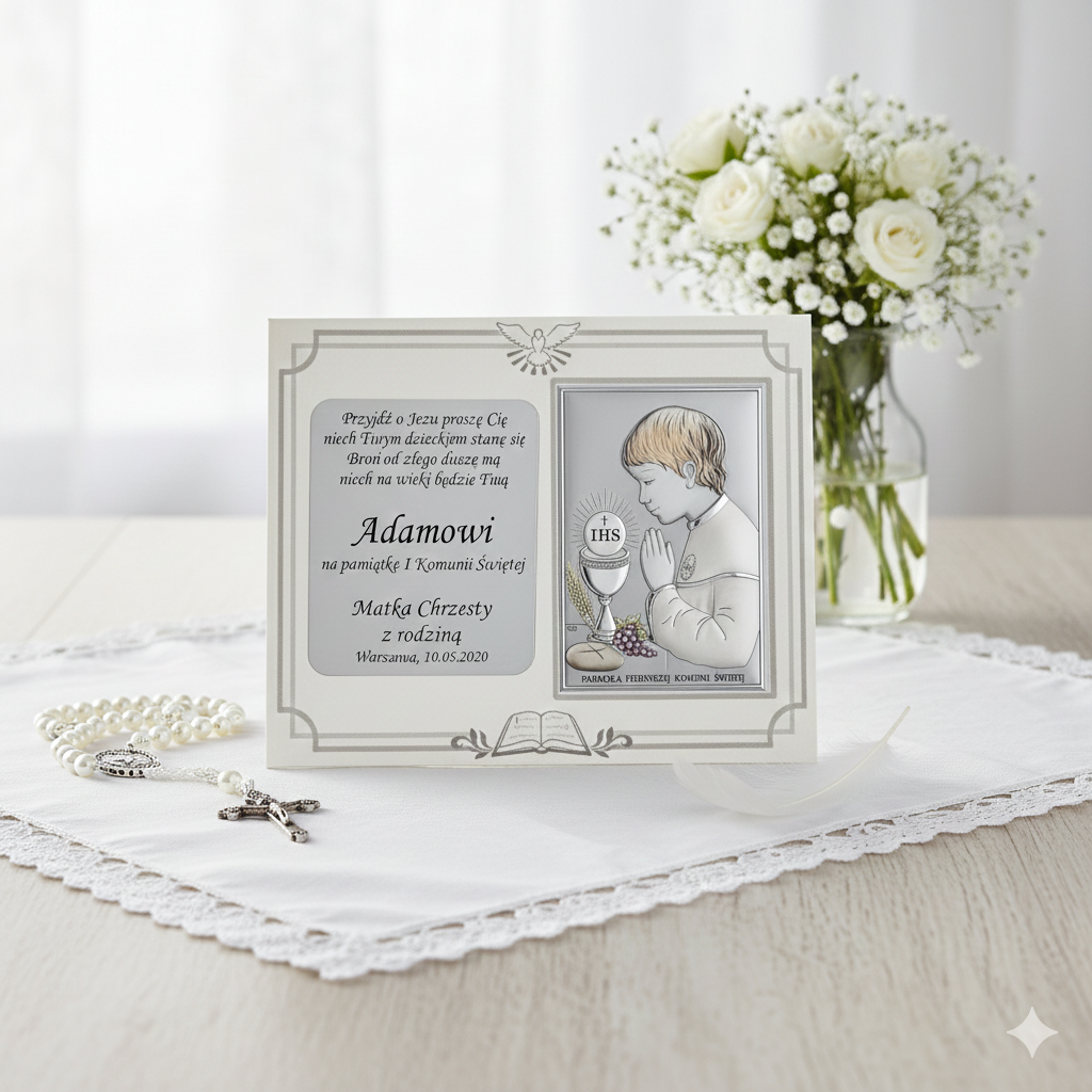 To pamiątka, która wprowadza dziecko w świat sakramentu Eucharystii i przypomina o tym szczególnym dniu przez wiele lat. Idealna dla chłopca jako prezent od rodziców, chrzestnych, dziadków lub bliskich.