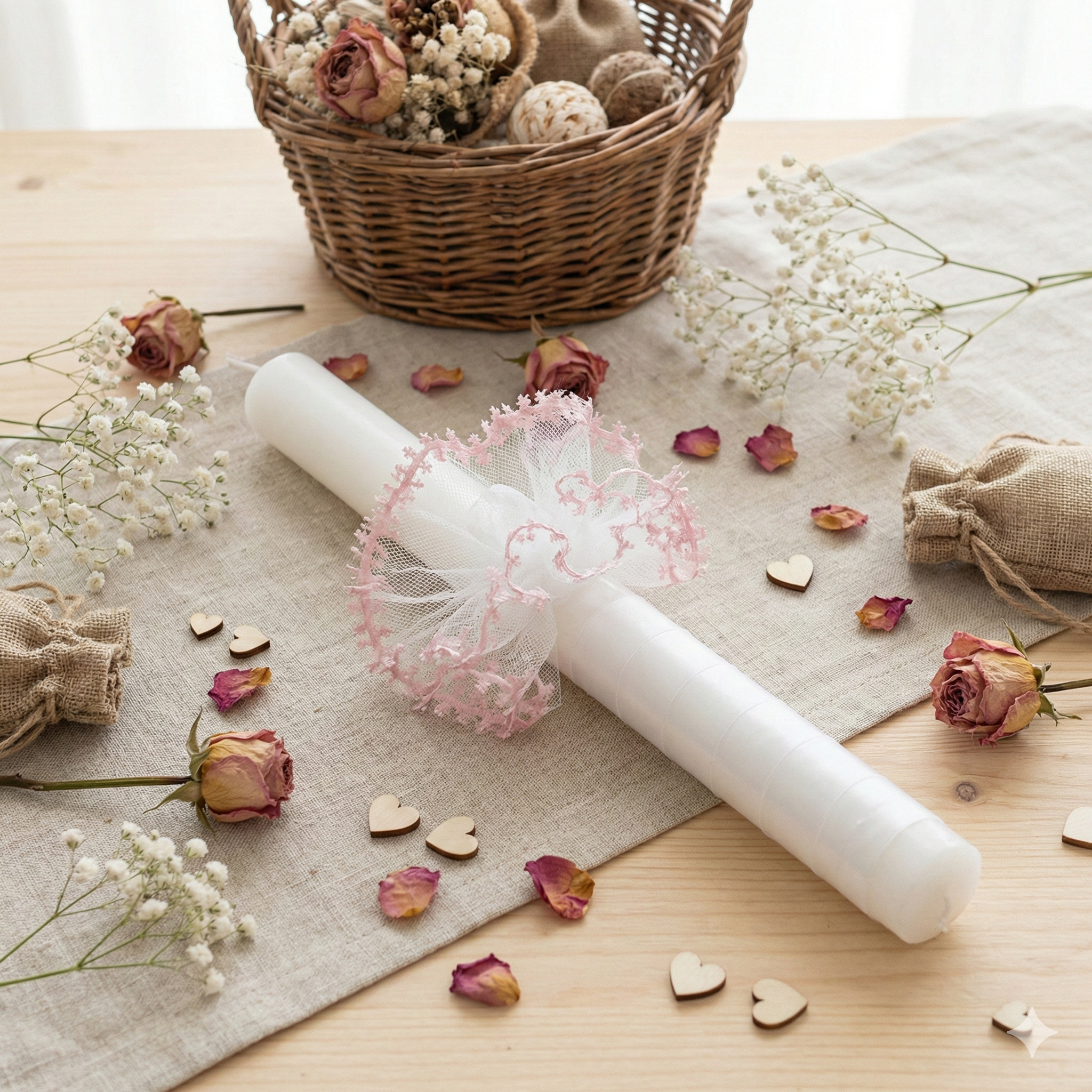 Stroik na świecę to drobny, ale znaczący element, który dodaje uroczystości elegancji i duchowego charakteru. Sprawdzi się przy każdej świecy okolicznościowej – od Chrztu Świętego, przez Pierwszą Komunię, aż po pamiątkową dekorację domową.