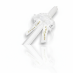 Elegancki stroik – osłonka na świecę gromniczną z możliwością personalizacji imienia i daty uroczystości. Idealny dodatek do świecy na Chrzest Święty lub Pierwszą Komunię. Dostępny w kilku wariantach kolorystycznych: różowym, błękitnym i białym.