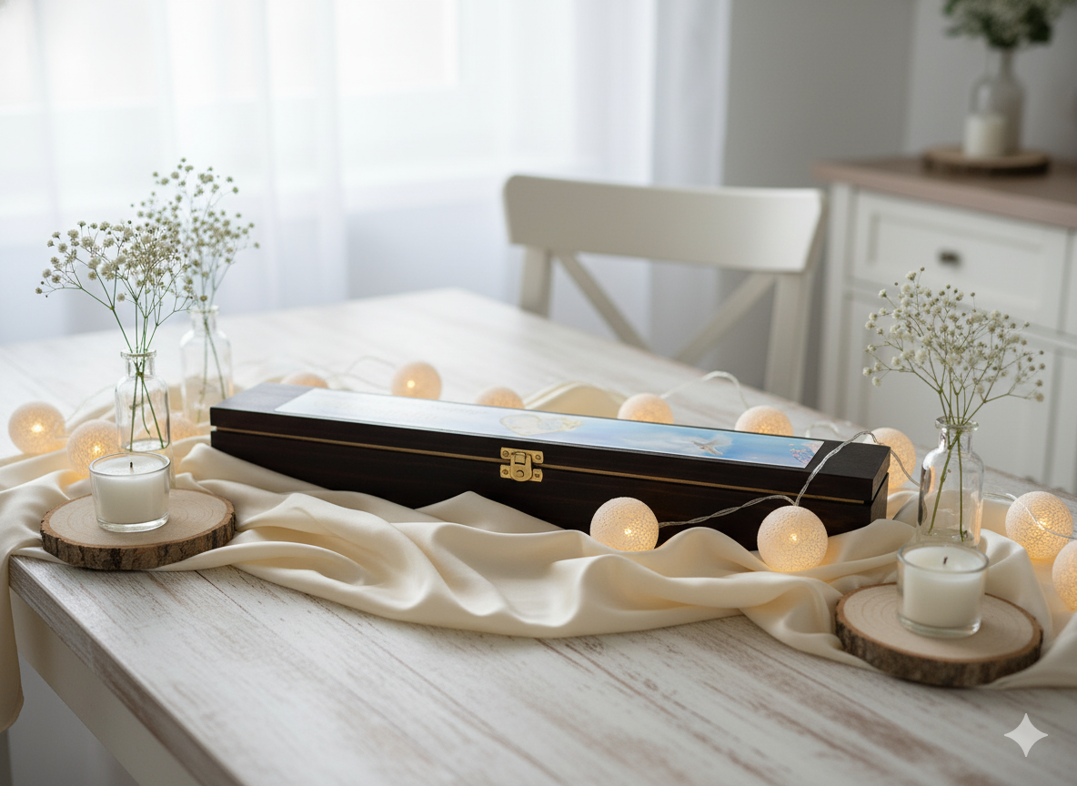 Każde pudełko powstaje w naszej polskiej pracowni z wykorzystaniem nowoczesnej technologii druku Ink-Jet oraz starannie wyselekcjonowanego drewna. Połączenie naturalnego materiału z duchowym symbolem Gołębicy tworzy pamiątkę, która zachwyca prostotą, elegancją i głębią przekazu.