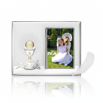 Format 10×15 cm w układzie poziomym doskonale sprawdzi się jako oprawa zdjęcia komunijnego. Ramka pięknie prezentuje się na półce, komodzie lub w domowym kąciku modlitwy. Całość zapakowana jest w eleganckie pudełko prezentowe.