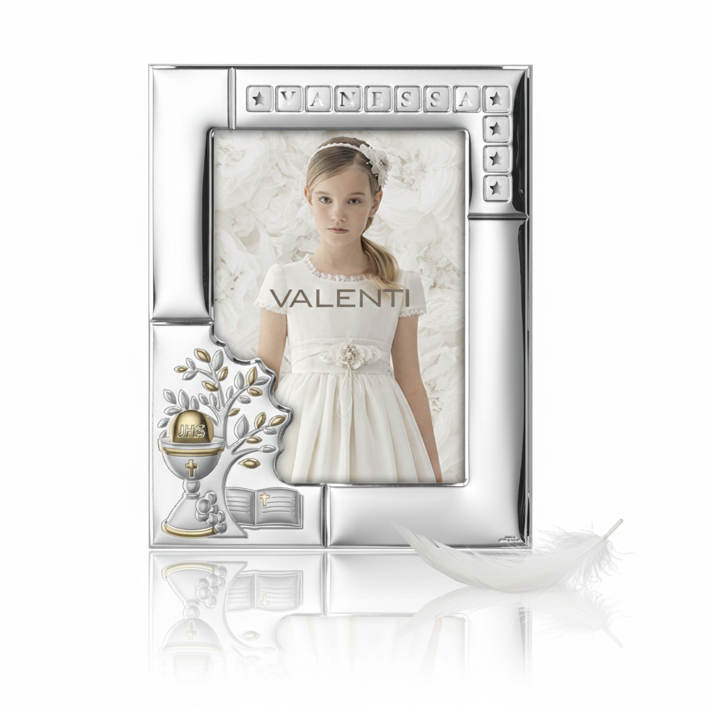 Istnieje możliwość personalizacji w formie graweru laserowego wykonywanego na tabliczce umieszczonej z tyłu ramki. Grawer może zawierać imię dziecka, datę Pierwszej Komunii Świętej lub krótką dedykację.