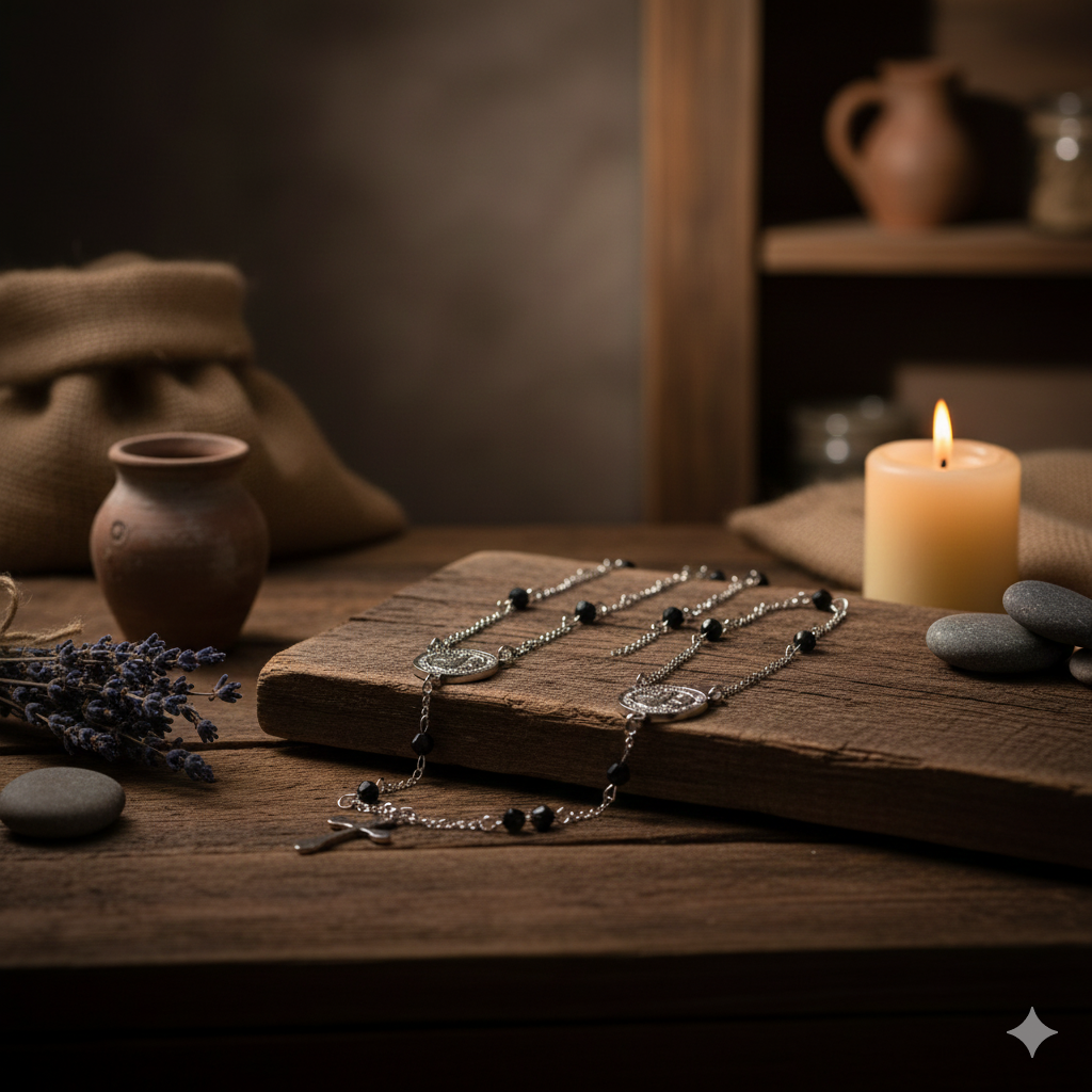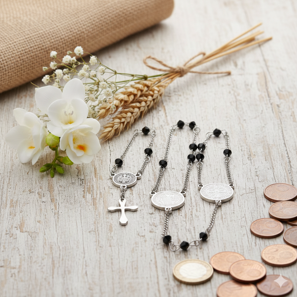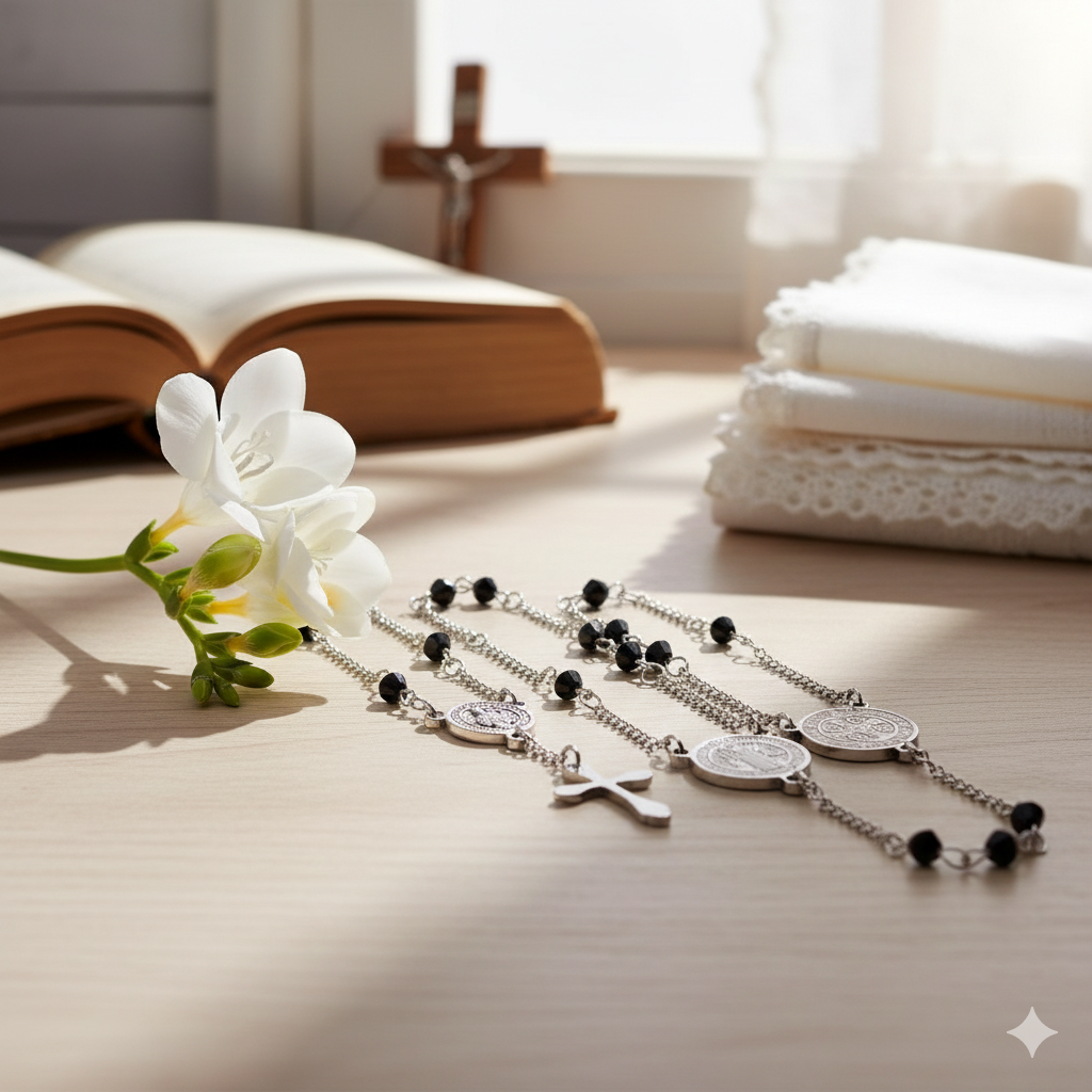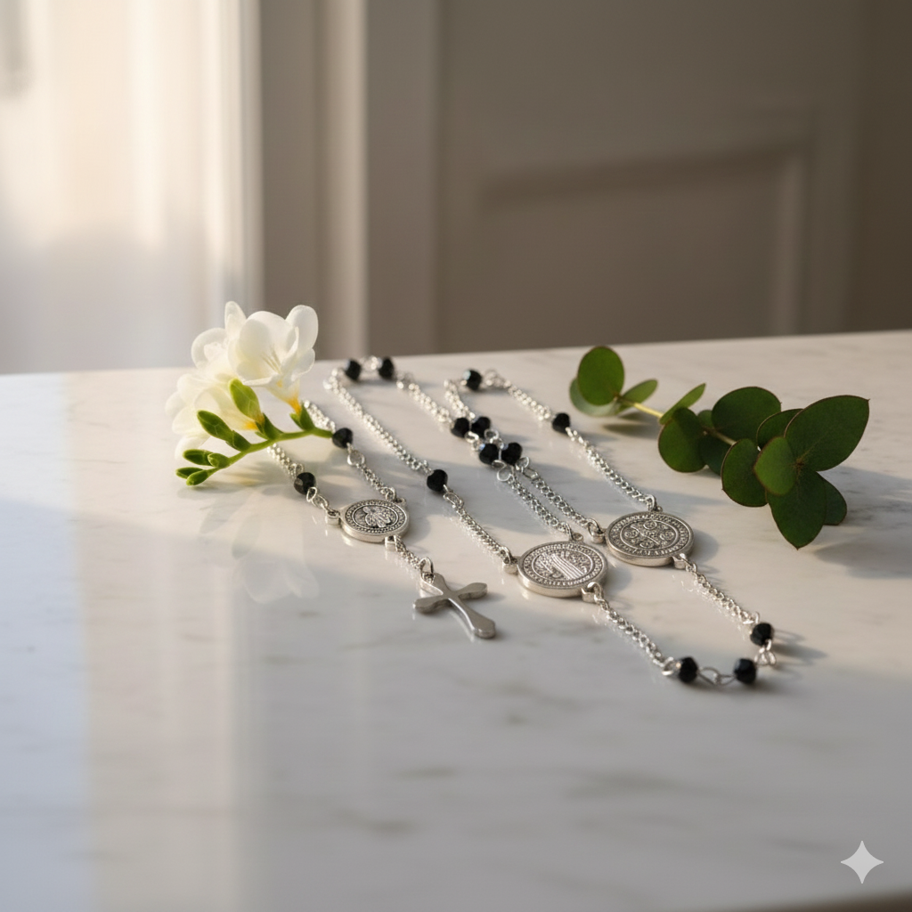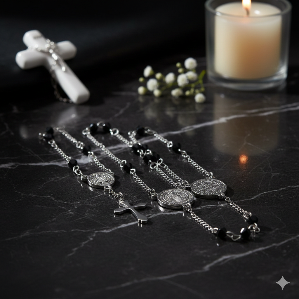 Różaniec Świętego Benedykta to elegancki, duchowy i trwały znak wiary, który towarzyszy na co dzień – w modlitwie i w codziennym życiu.