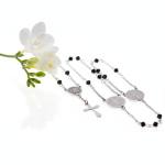 Ten wyjątkowy różaniec-naszyjnik ze stali szlachetnej łączy tradycyjną formę modlitwy z elegancją nowoczesnej biżuterii, pozwalając nosić wiarę blisko serca każdego dnia.