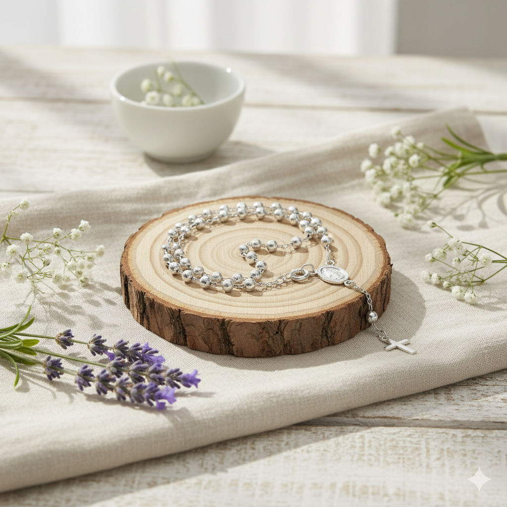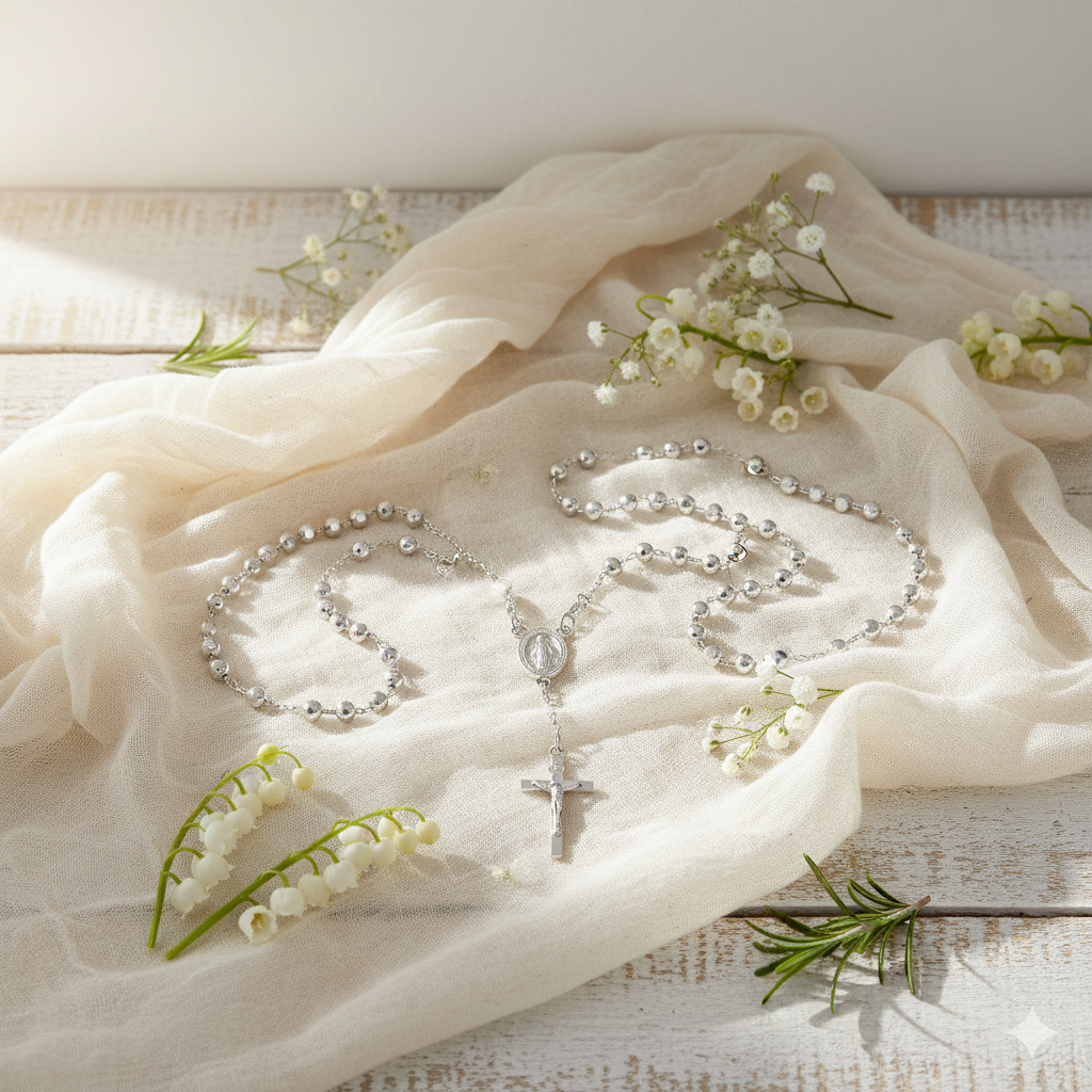 Niech ten srebrny różaniec diamentowany stanie się Twoim codziennym towarzyszem modlitwy i znakiem duchowego blasku wiary.