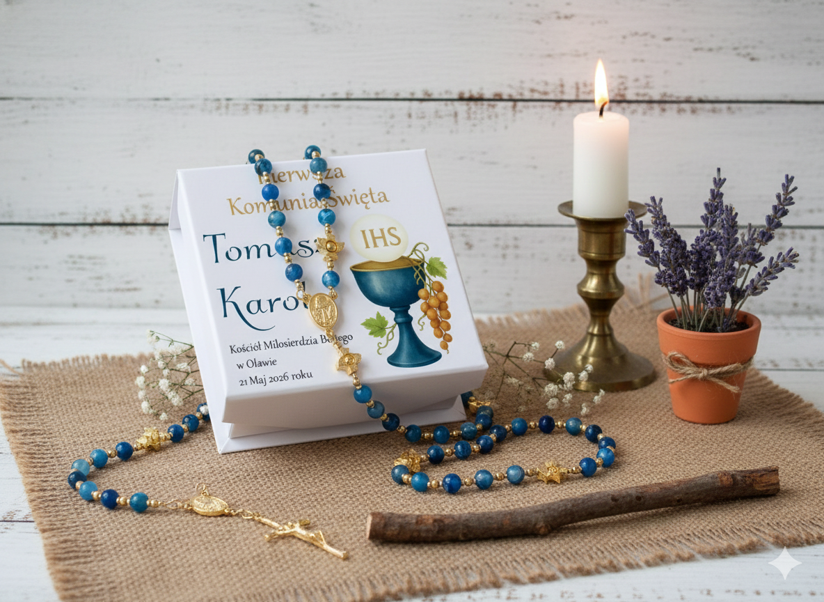 Odkryj różańce komunijne z kamieni naturalnych – połączenie trwałości, elegancji i głębokiej symboliki sakramentu.