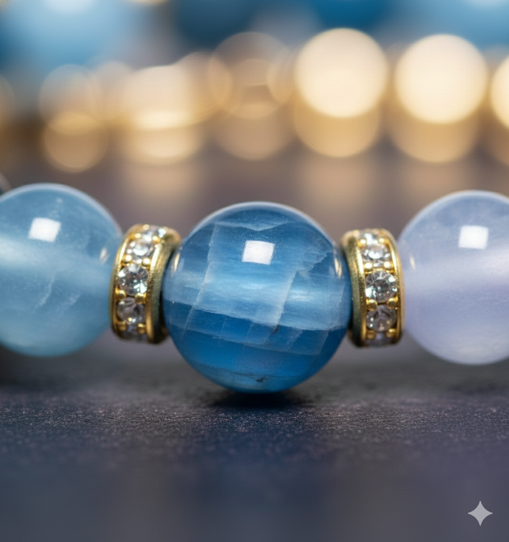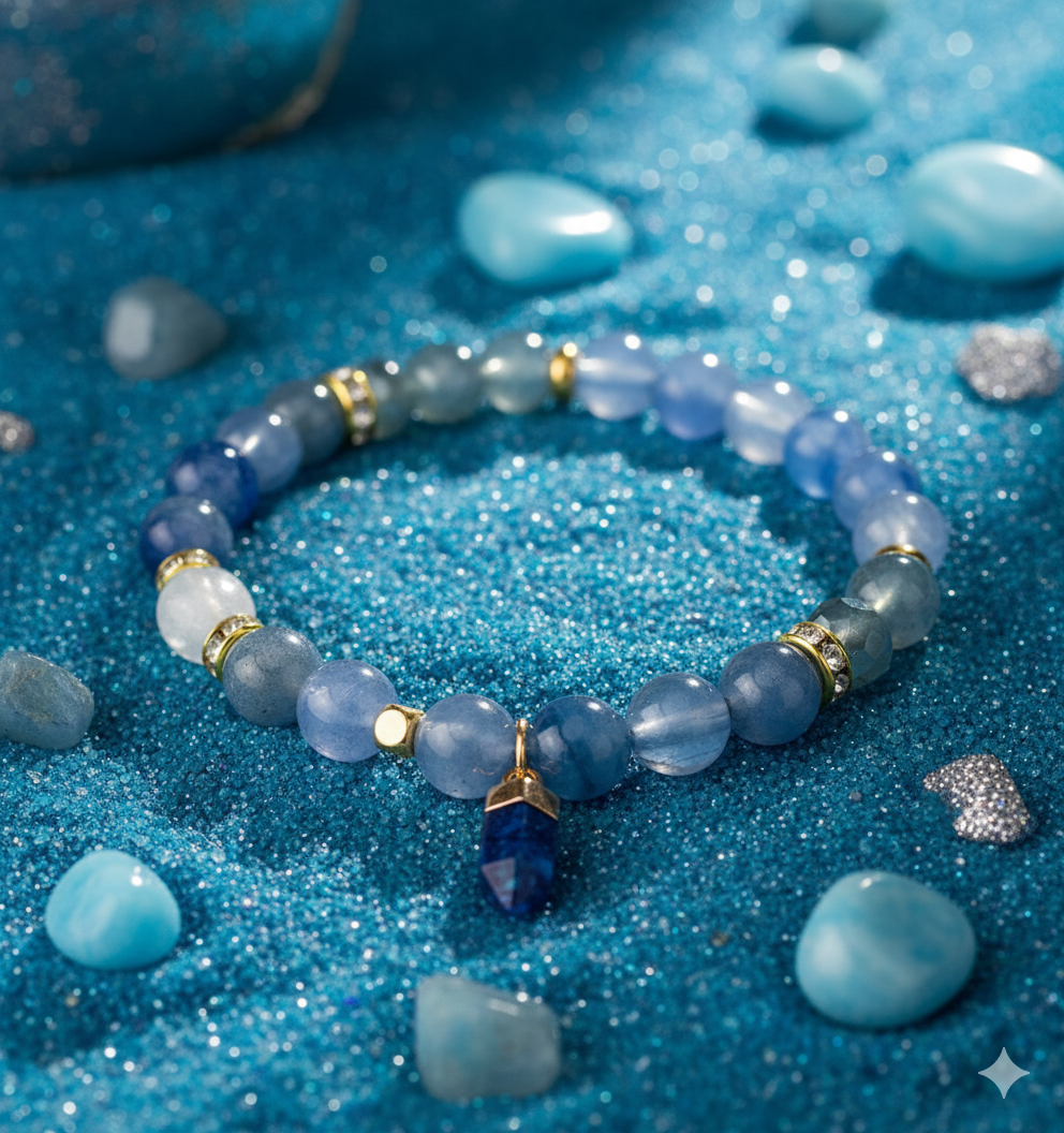 Bransoletka SacraStone™ WOMEN – Niebieski Awenturyn to subtelny talizman czystości umysłu, harmonii i odwagi. Awenturyn w odcieniach błękitu jest kamieniem, który pomaga odzyskać równowagę, wspiera intuicję i przynosi ukojenie w momentach stresu.