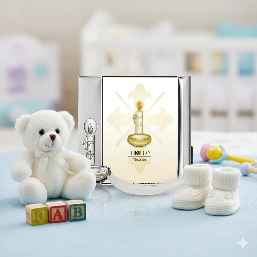 Srebrna ramka na zdjęcie z kolekcji SILVER BAPTISM™ to elegancka i ponadczasowa pamiątka upamiętniająca sakrament Chrztu Świętego – moment duchowych narodzin i włączenia dziecka do wspólnoty Kościoła. Subtelny motyw chrzcielny podkreśla uroczysty i sakralny charakter tej wyjątkowej ceremonii.