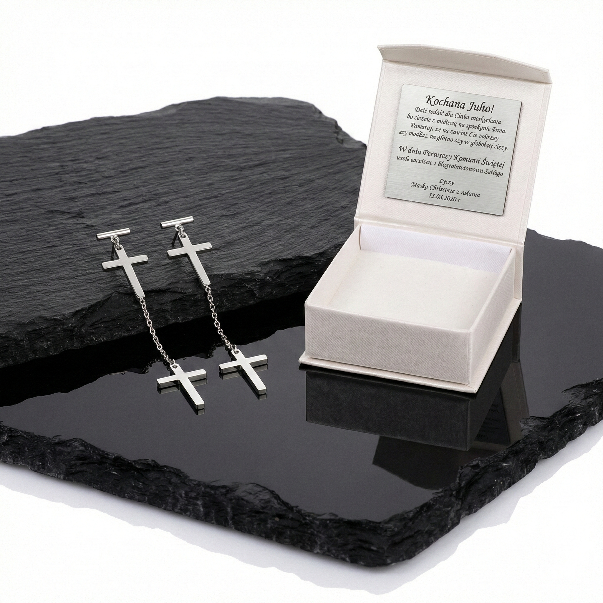 - komplet zapakowany jest w ozdobne pudełko prezentowe wraz z grawerowaną dedykacją