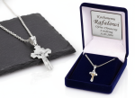 Srebrny krzyżyk z Jezusem na krzyżu wykonany ze srebra pr. 925 to symbol ofiary, zbawienia i miłości Boga do człowieka. Diamentowany blask i precyzyjny detal tworzą wyjątkową biżuterię o duchowym znaczeniu. W pudełku z grawerem lub nadrukiem Ink-Jet – idealny prezent sakralny.