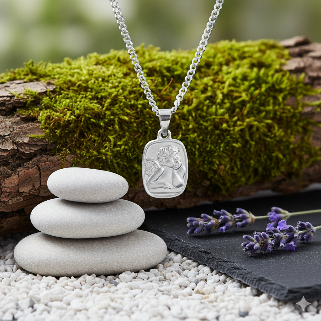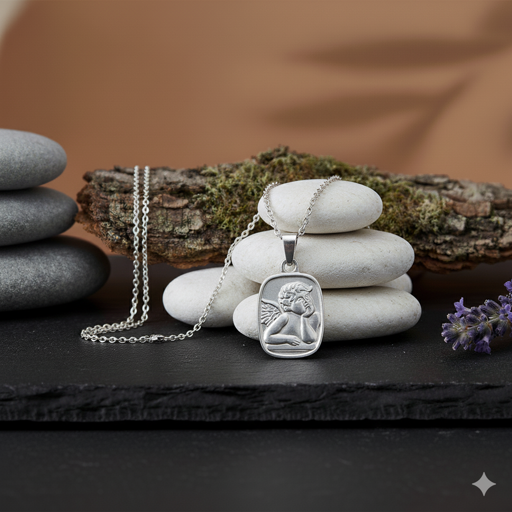 Niech srebrny medalik z Aniołem Stróżem będzie Twoim codziennym znakiem ochrony i błogosławieństwa.