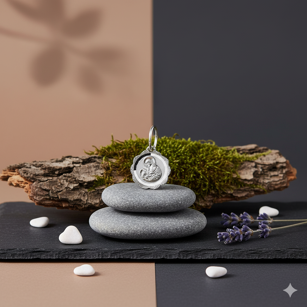 Medalik wykonany ze srebra próby 925 emanuje delikatnym blaskiem i spokojem. To biżuteria pełna duchowego piękna i symboliki opieki, idealna jako prezent dla matki, chrzestnej lub pamiątka sakramentalna. Motyw karmiącej Maryi niesie przesłanie miłości i błogosławieństwa dla całej rodziny.