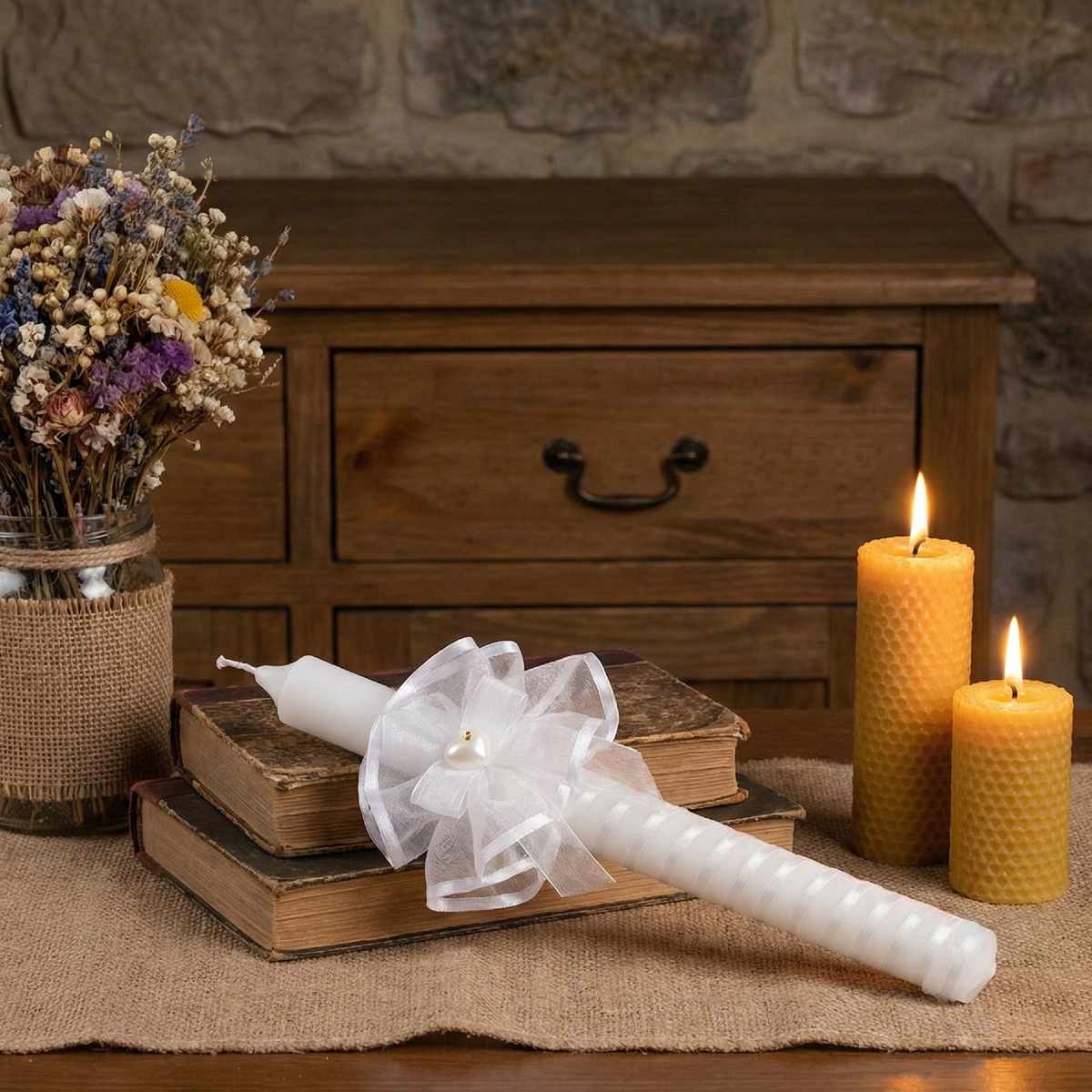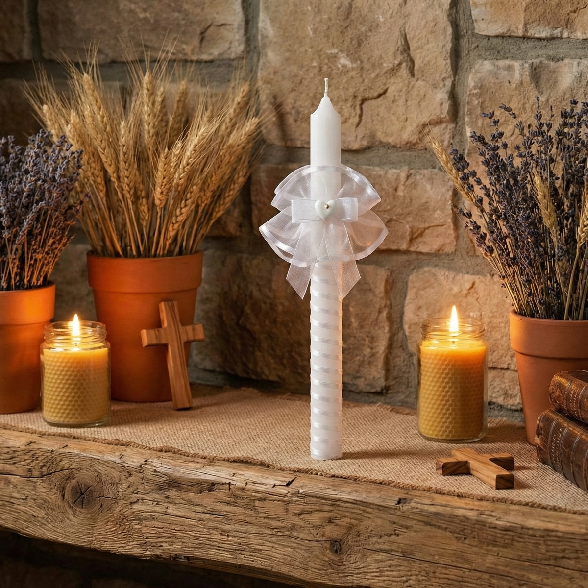 Minimalistyczna forma i spokojna estetyka sprawiają, że świeca doskonale wpisuje się w uroczysty charakter Chrztu Świętego oraz Pierwszej Komunii Świętej. To światło zapalone w czasie sakramentu staje się znakiem wiary, która ma prowadzić przez całe życie.