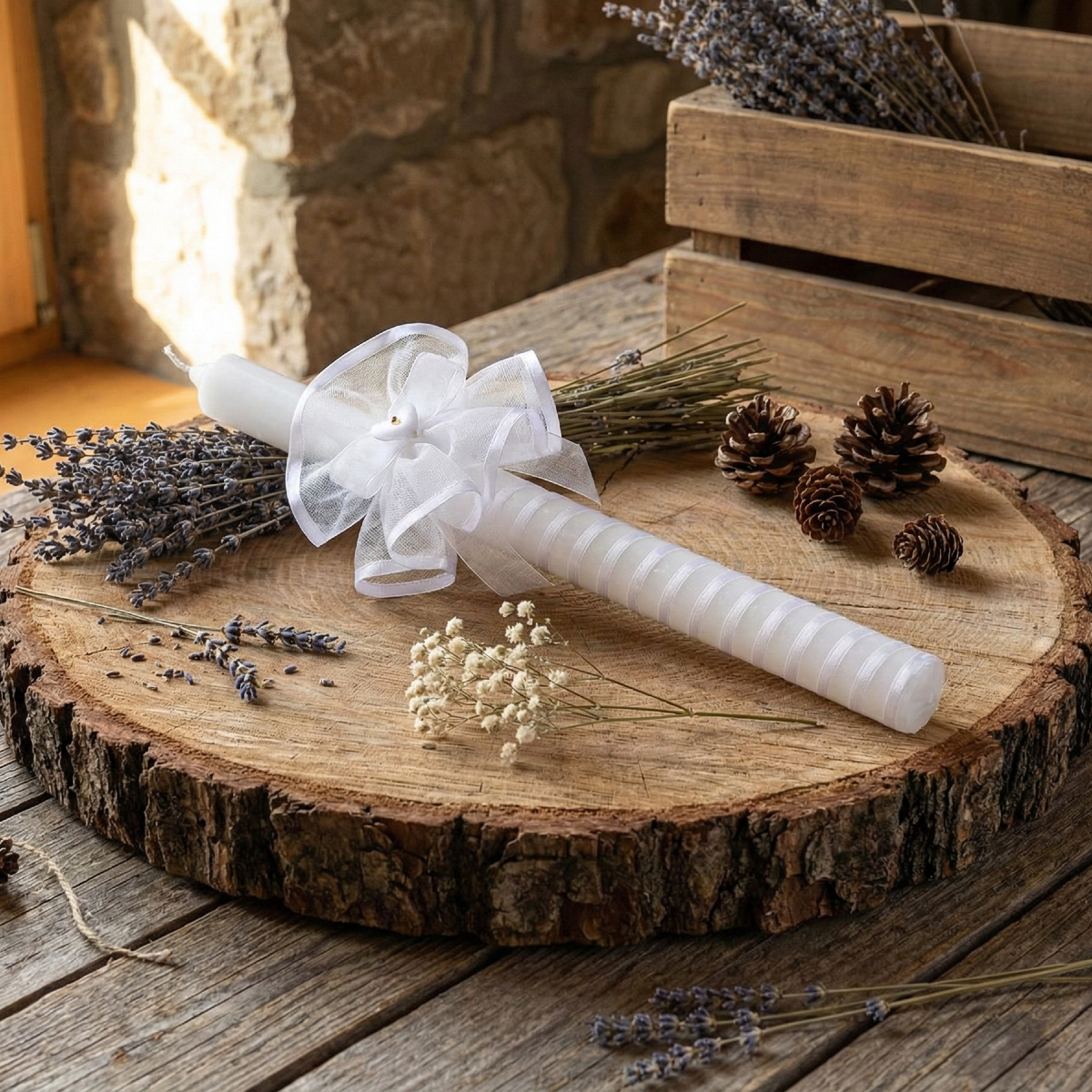 Świeca AMAZON® SZYFON została zaprojektowana jako świeca sakramentalna, przeznaczona zarówno na Chrzest Święty, jak i Pierwszą Komunię Świętą. Jej neutralna, pastelowa stylistyka sprawia, że doskonale pasuje do uroczystości dziewczynki i chłopca, a po ceremonii pozostaje piękną pamiątką duchowej drogi.