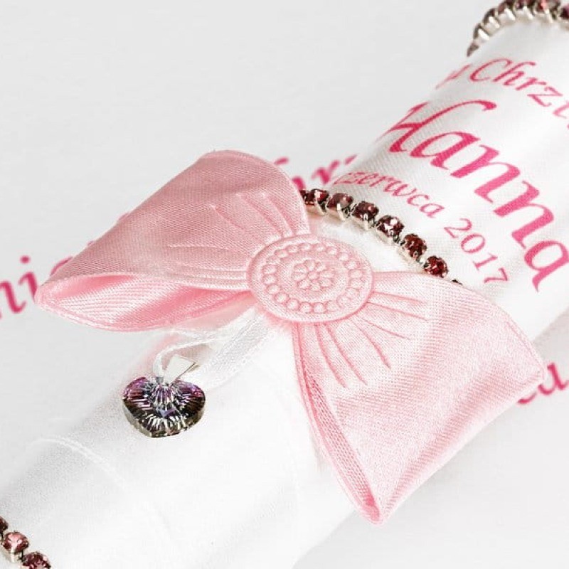 Chrzest Święty to moment, w którym miłość Boga spływa na dziecko w formie łaski, światła i pokoju. Zestaw „Glamour Crystal – Blask Wiary” w kolorze różowym symbolizuje miłość, czułość i duchową radość.