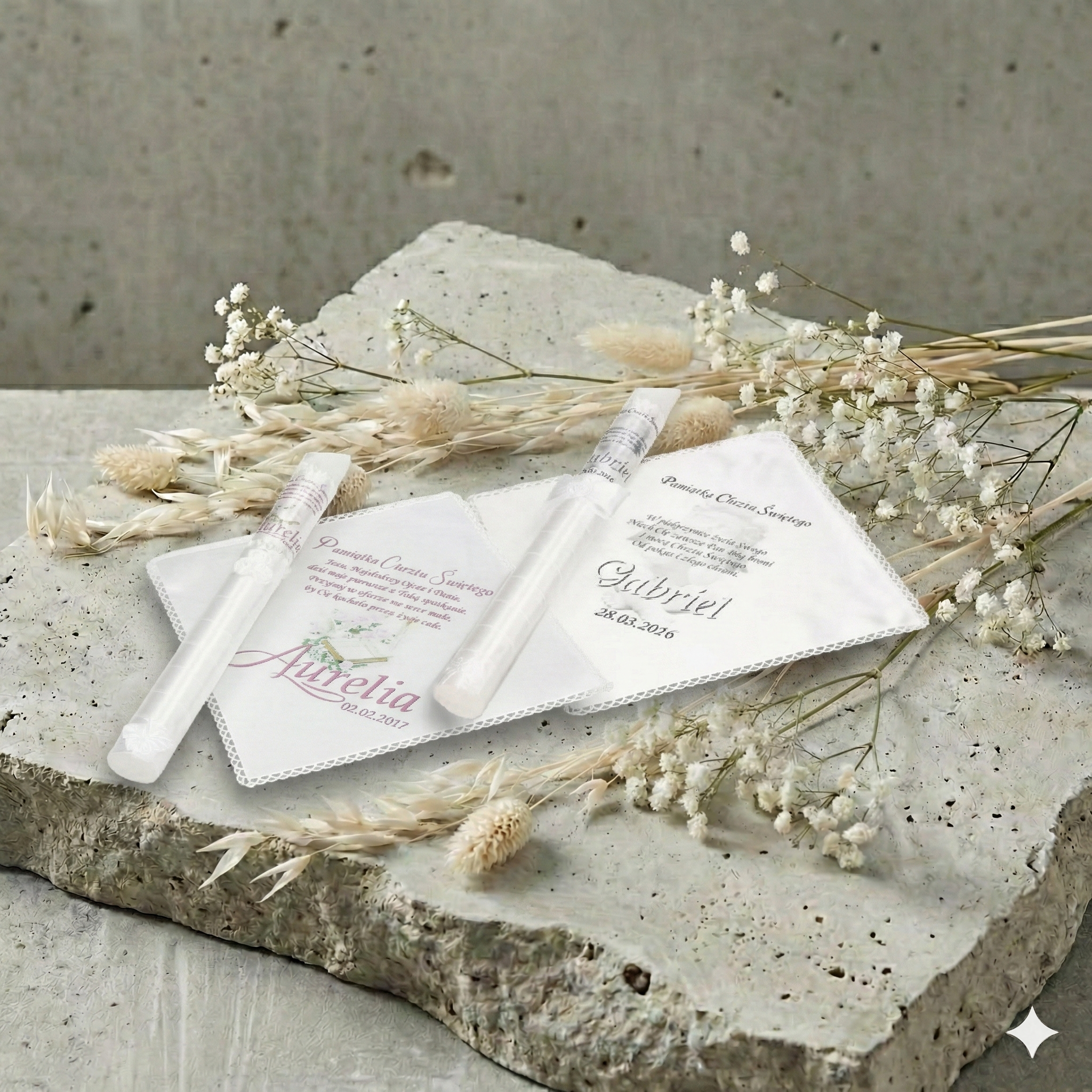 Niech ten zestaw stanie się pamiątką pełną duchowego znaczenia – symbolem wiary, światła i Bożego błogosławieństwa.