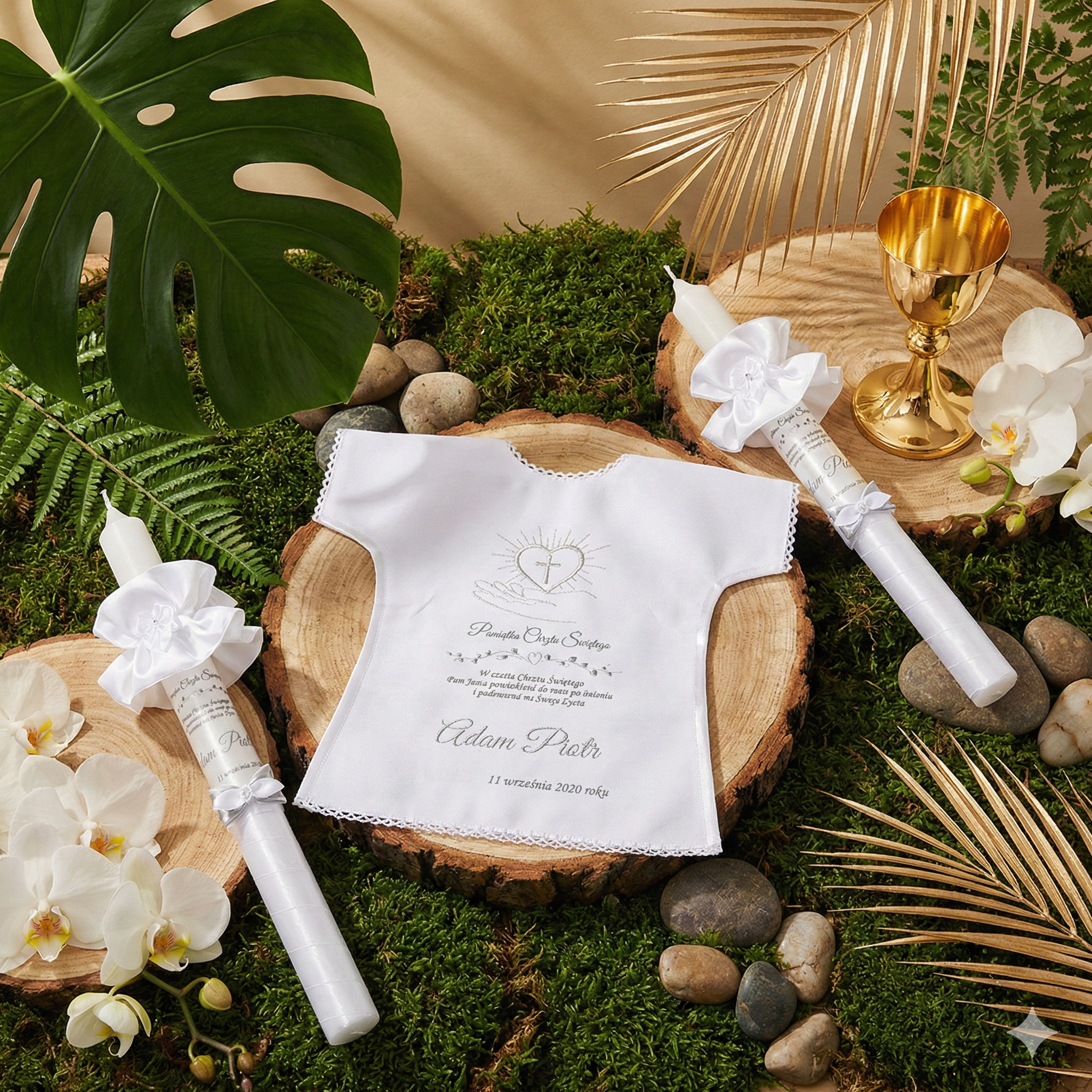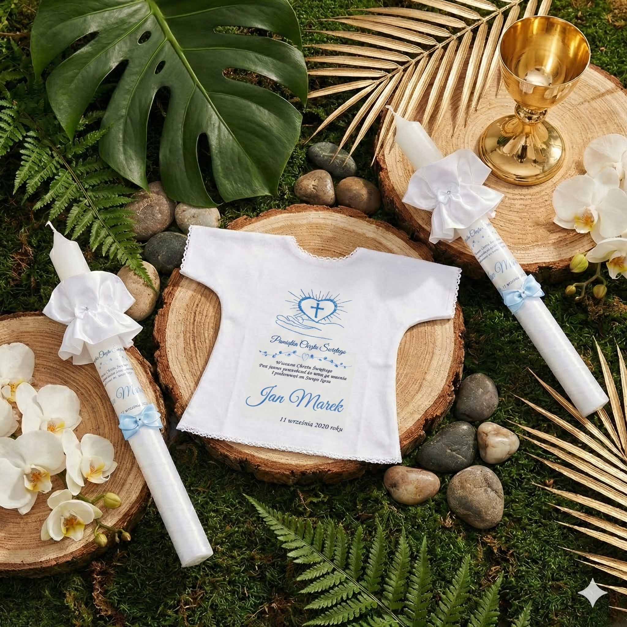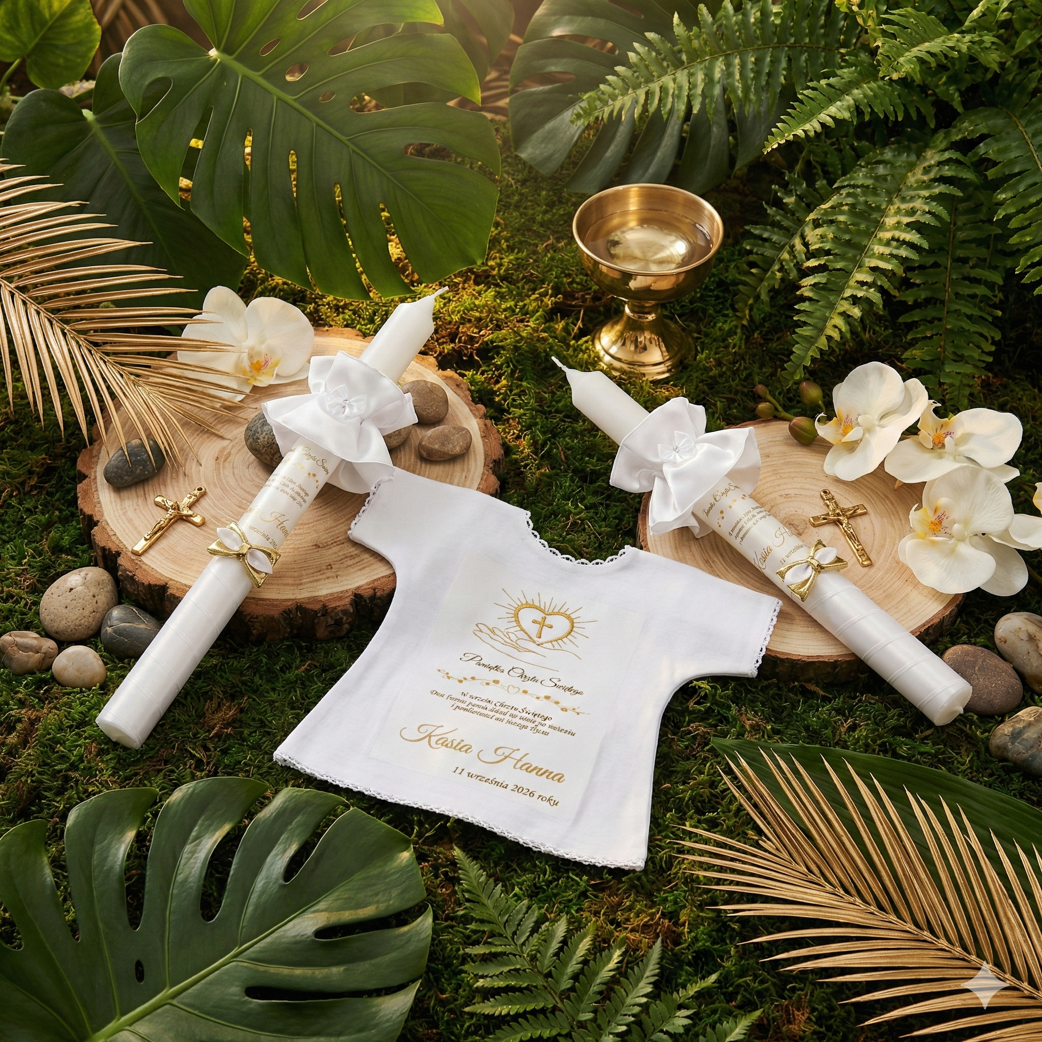 Dobierz dodatki, które harmonijnie uzupełnią zestaw i stworzą spójną pamiątkę Chrztu Świętego.