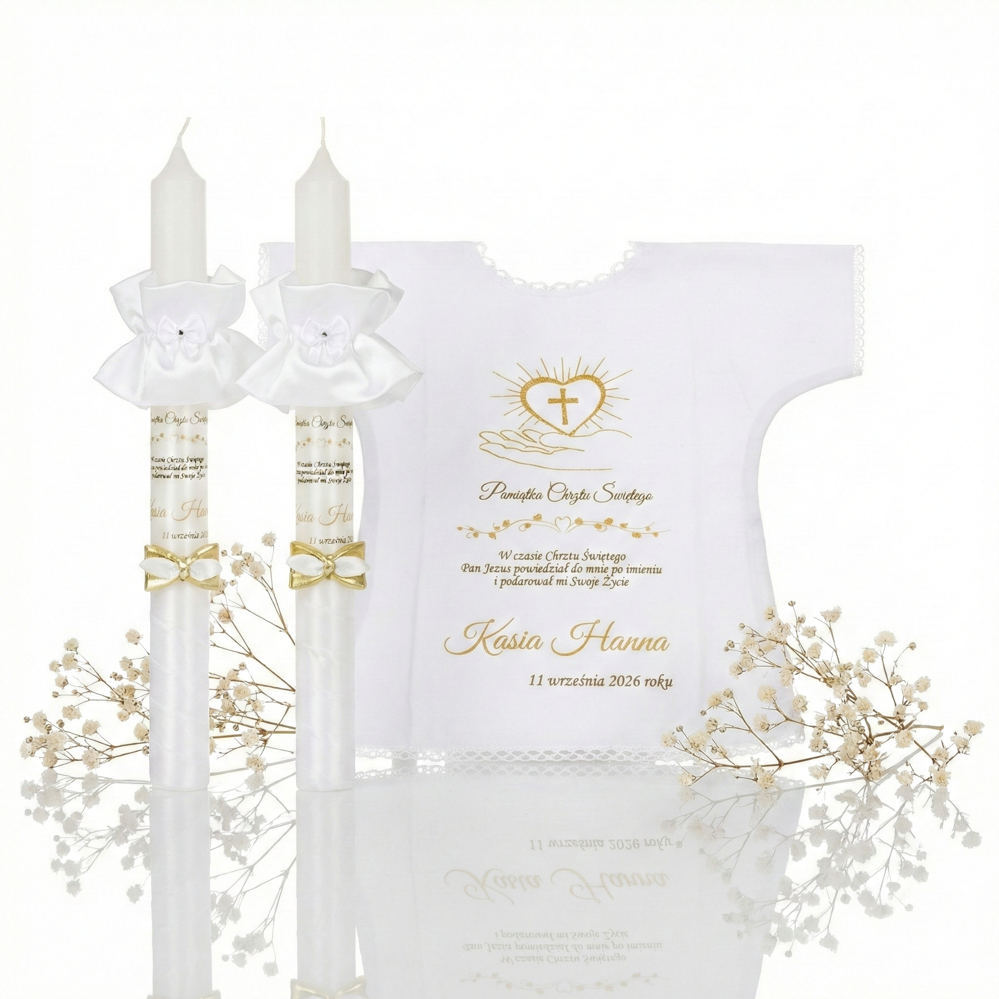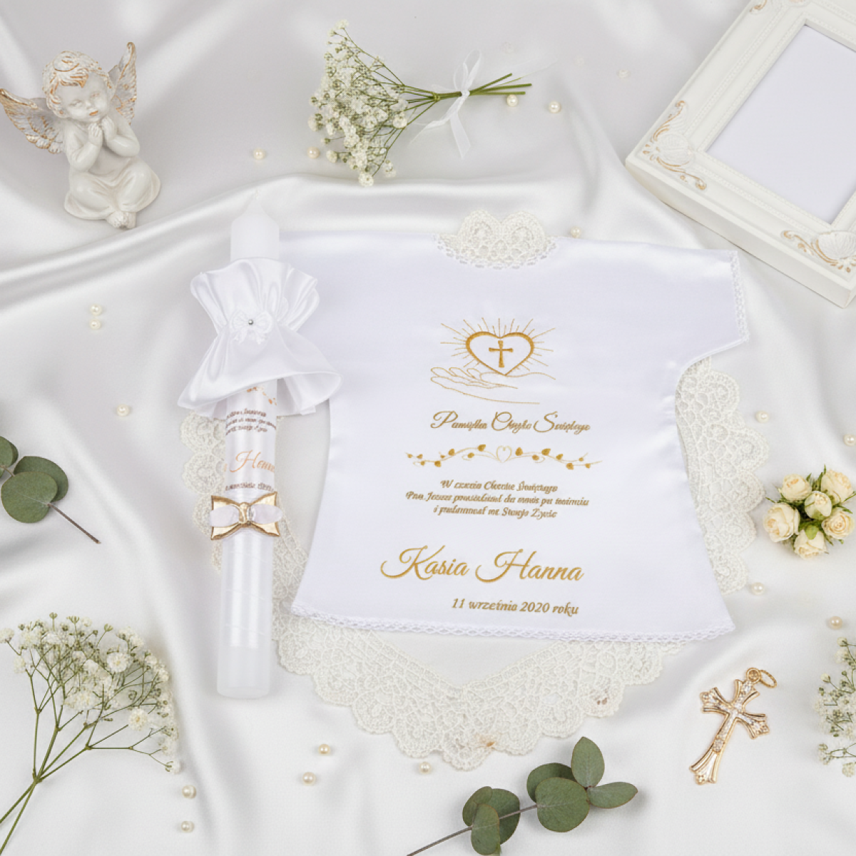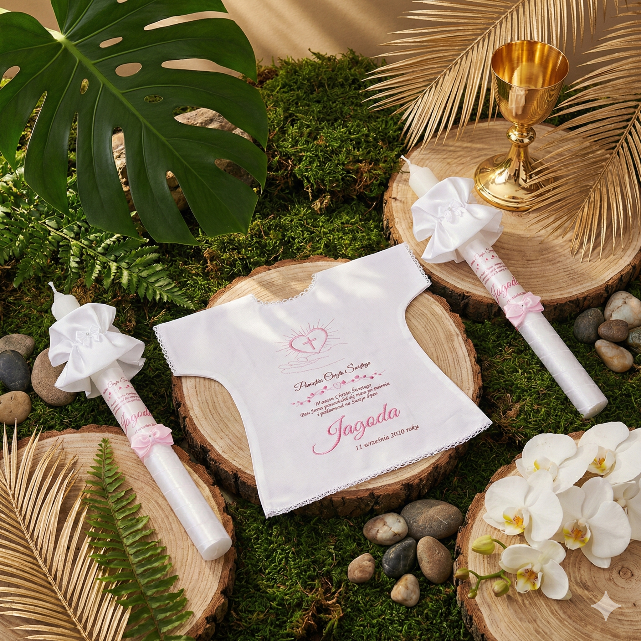 Dobierz dodatki, które harmonijnie uzupełnią zestaw i stworzą spójną pamiątkę Chrztu Świętego.