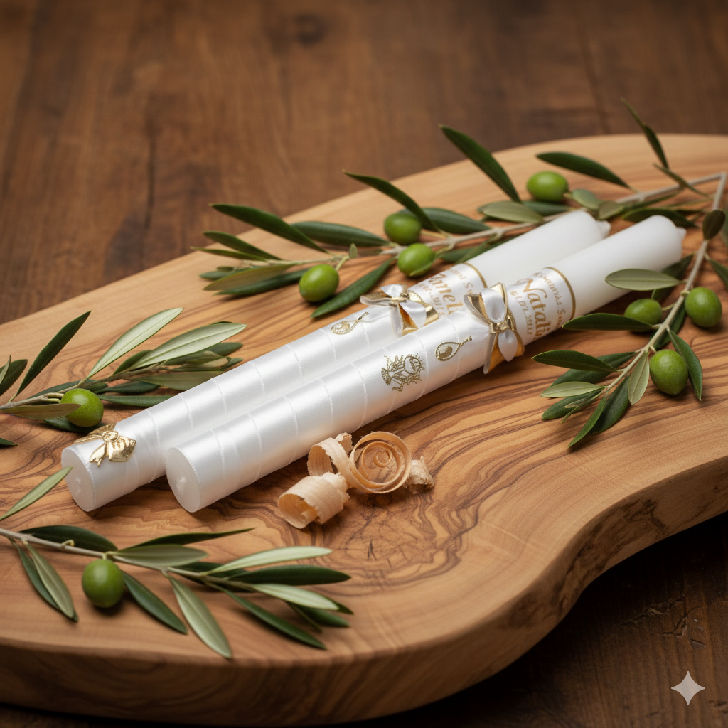 Ekskluzywna świeca imienna z kolekcji AURORA® – Światło i Symbol Wiary, ozdobiona medalikiem z prawdziwego złota pr. 585. Personalizowana imieniem i datą uroczystości, stanowi wyjątkową pamiątkę Chrztu lub Komunii Świętej. Symbol światła, wiary i Bożej opieki w luksusowym wydaniu.