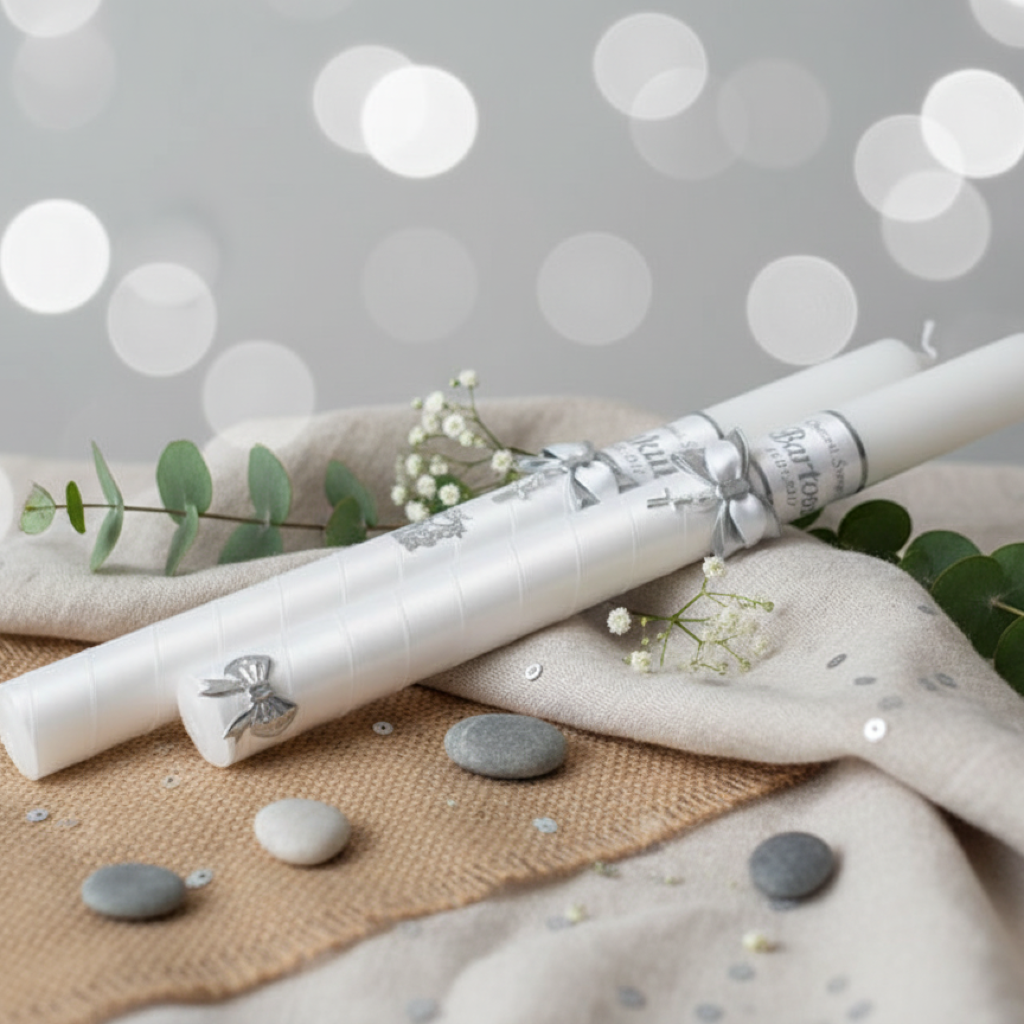 Poznaj kolekcję personalizowanych świec na Chrzest i Komunię Świętą.