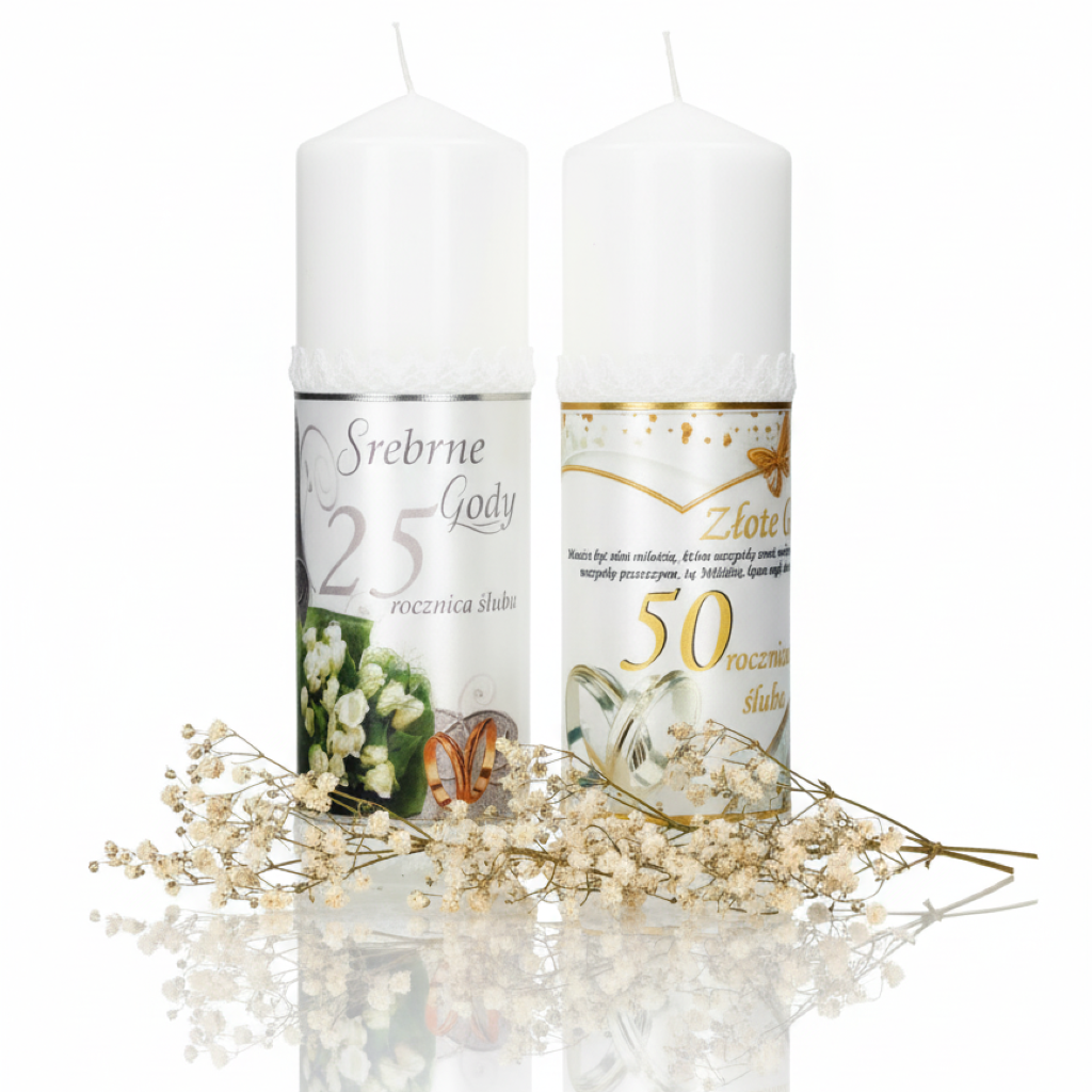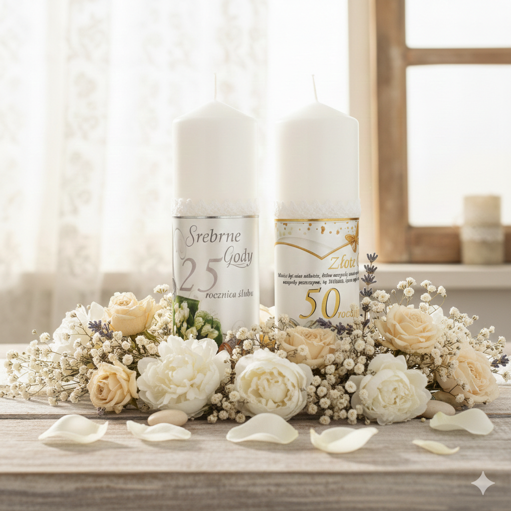 Każda świeca wykonywana jest indywidualnie i może być spersonalizowana imionami małżonków, datą ślubu lub jubileuszu oraz osobistą dedykacją. Dzięki temu staje się niepowtarzalną pamiątką o głębokim, osobistym znaczeniu.