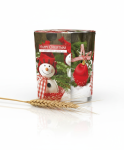Świeca zapachowa WESOŁE ŚWIĘTA w ozdobnym szkle z motywem Merry Christmas – kompozycja nut kwiatowych, owocowych i drzewnych. Tworzy magiczny klimat Świąt, odpręża i wypełnia wnętrze ciepłem. Produkt z atestem PZH, bezpieczny dla zdrowia.