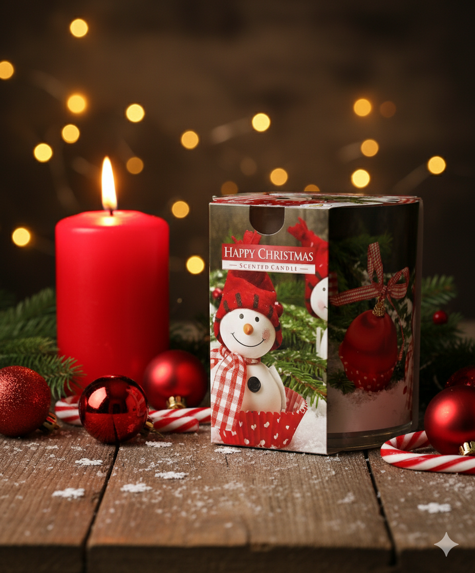 Wyjątkowa świeca zapachowa WESOŁE ŚWIĘTA to połączenie aromaterapii i magii Bożego Narodzenia. Delikatny płomień, subtelny blask i wyważona kompozycja zapachowa wypełniają wnętrze spokojem i ciepłem. Zapalona świeca otula przestrzeń przyjemnym aromatem, który budzi wspomnienia, uspokaja i relaksuje. To idealny wybór dla miłośników zapachów i pięknych dekoracji, które tworzą atmosferę pełną światła i harmonii.