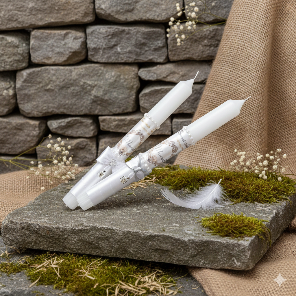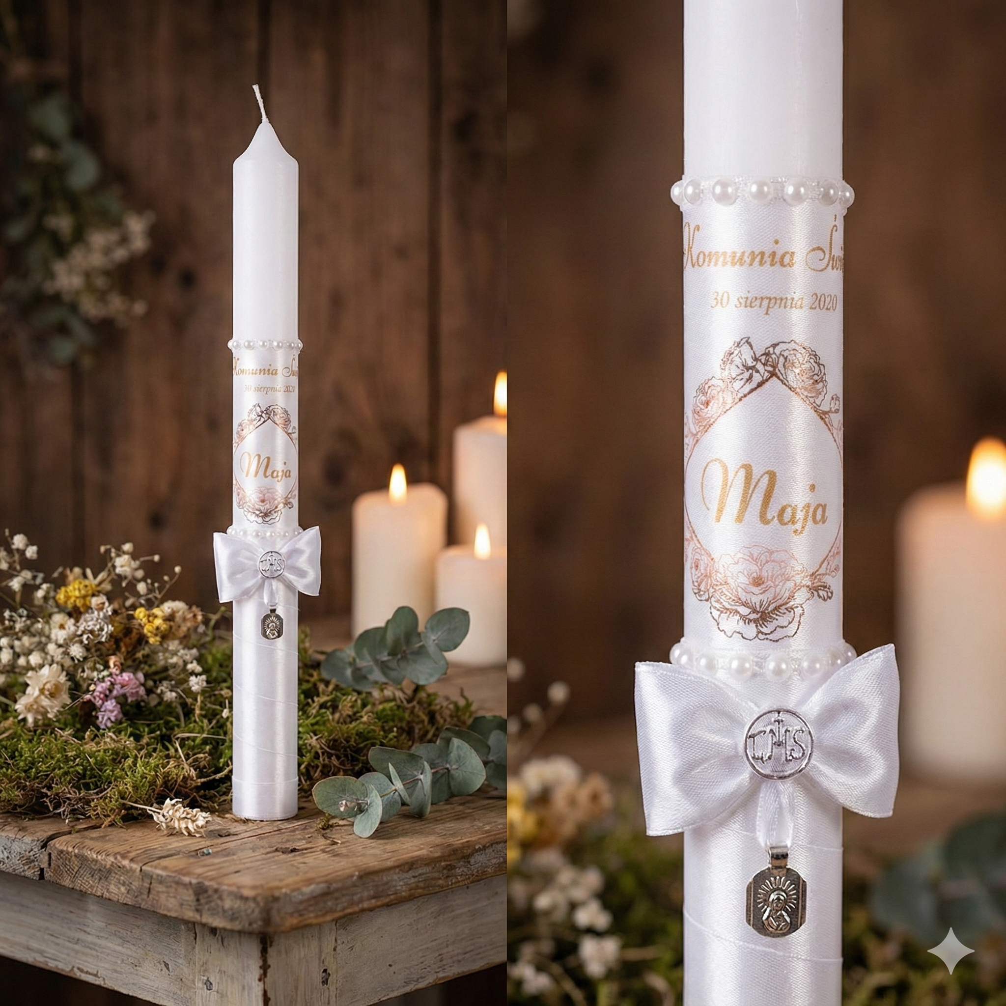 Poznaj kolekcję personalizowanych świec na Chrzest i Komunię Świętą.