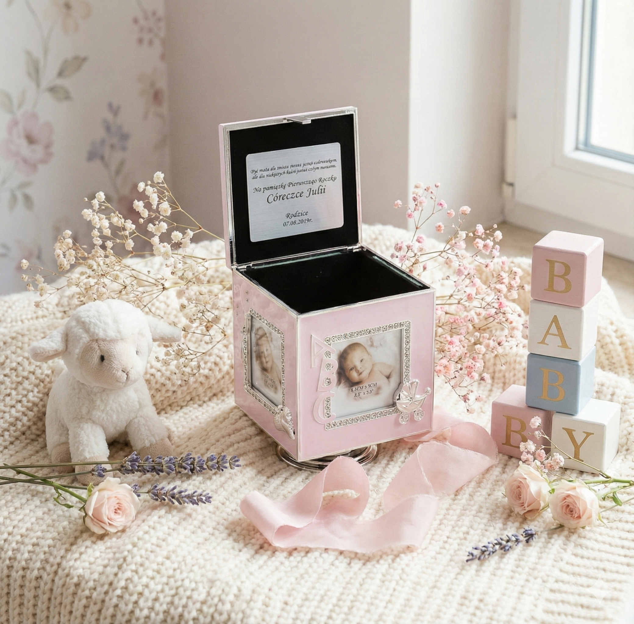 Poznaj inne delikatne pozytywki i szkatułki – pamiątki pełne czułości i dziecięcej symboliki.