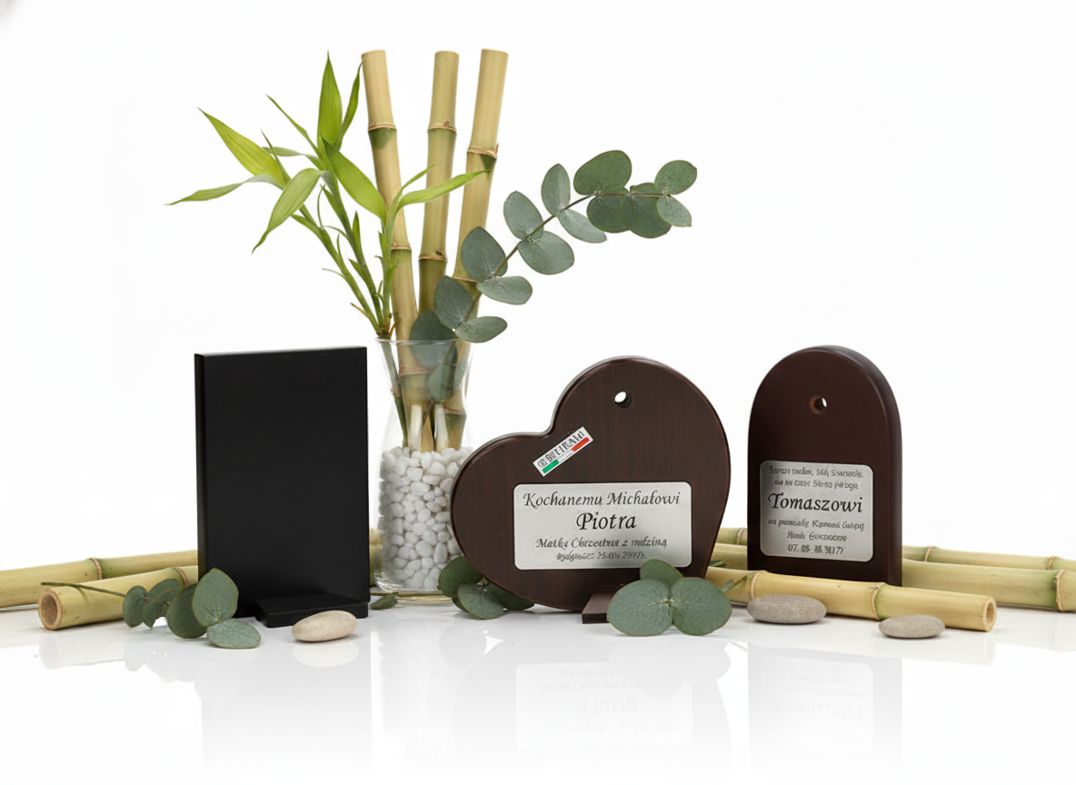 Wybierz tabliczkę z indywidualnym grawerem laserowym – imię, data, cytat lub krótka dedykacja.