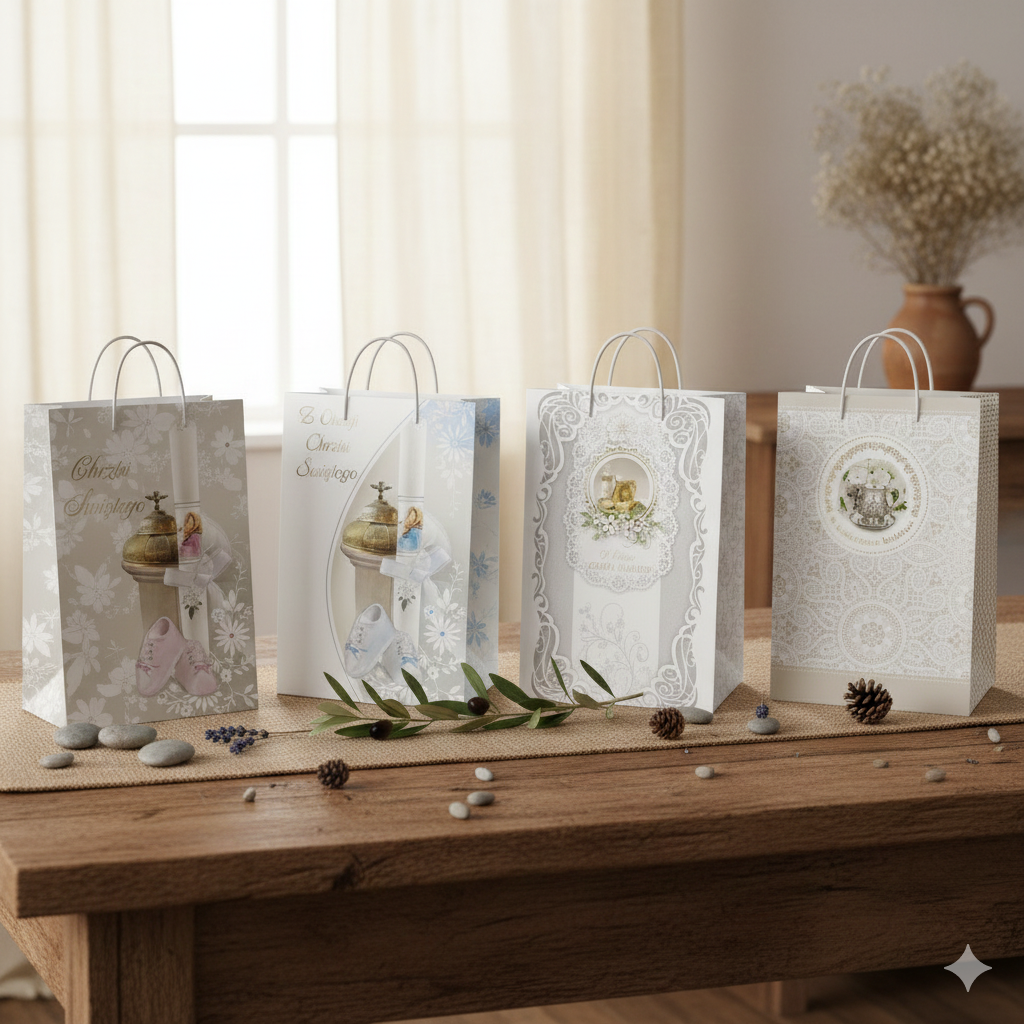 Zobacz wszystkie torebki → Kartki na Chrzest →Wybierz wyjątkową pamiątkę Chrztu Świętego