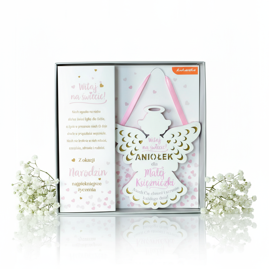 Zobacz pamiątki narodzin, Chrztu Świętego i delikatne upominki z motywem Anioła – idealne dla małej księżniczki.