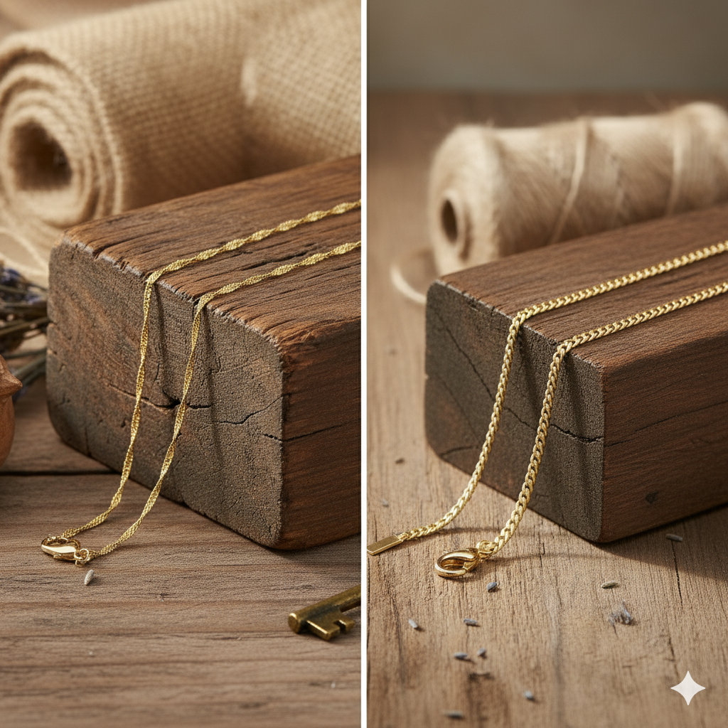 - Dwa sploty łańcuszka do wyboru: Pancerka lub Singapore,