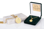 Komplet zawiera medalik i łańcuszek w ozdobnym pudełku z możliwością dodania dedykacji – trwałego graweru laserowego lub nadruku Ink-Jet bezpośrednio na wieku. Możesz dodać imię, datę, błogosławieństwo lub krótką modlitwę, czyniąc z tego upominku osobistą pamiątkę wiary i ochrony.