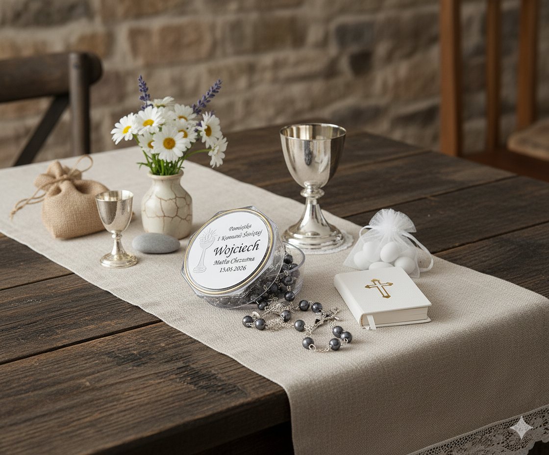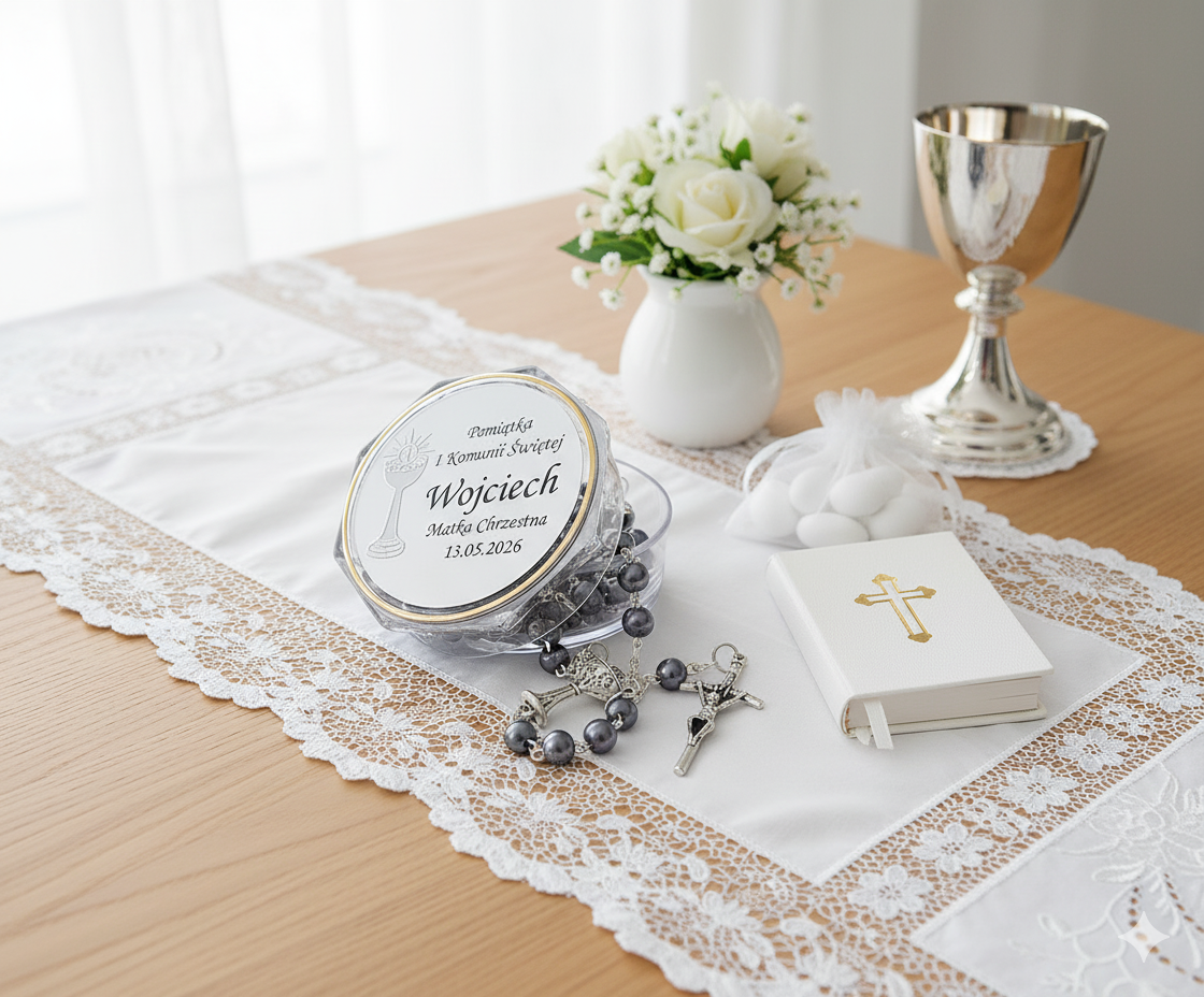 Dobierz produkty, aby stworzyć spójną i elegancką oprawę Pierwszej Komunii Świętej.